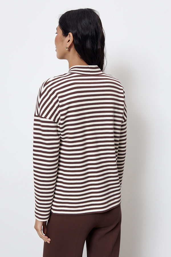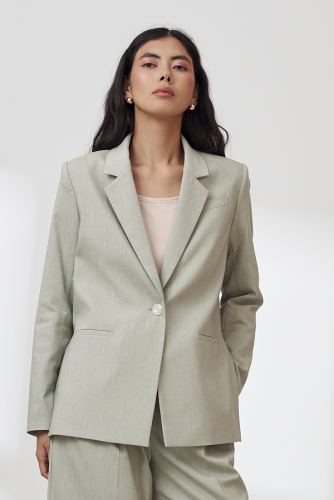 Кардиган из эластичного полотна свободного силуэта. Втачной длинный рукав в спущенную пройму. Линия борта обработана притачной планкой с застёжкой на пуговицы.
