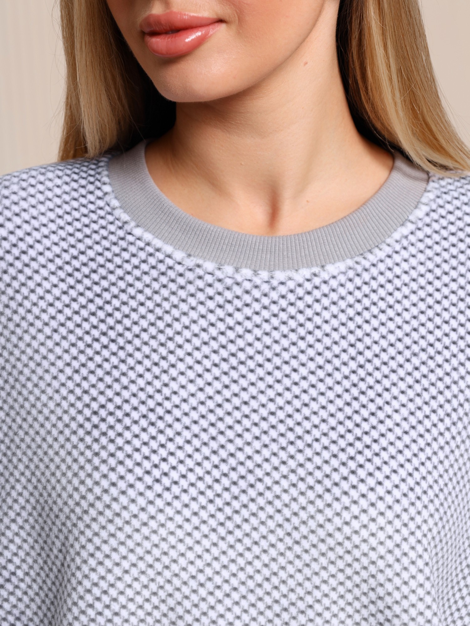 Джемпер – из набивного полотна, с длинными втачными рукавами, горловиной овальной формы, обработанной втачной планкой.