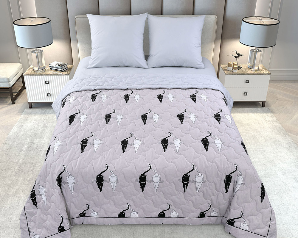 Уникальность комплекта для сна заключается в том, что вместо традиционного пододеяльника и наволочек в комплект входит тонкое стеганое одеяло, выполненное из ткани того же дизайна, что и основной комплект.