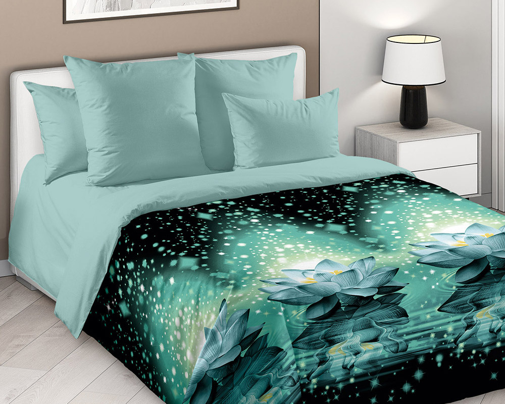КПБ Мерцающий лотос 2сп с простыней на резинке 160*200*25, перкаль