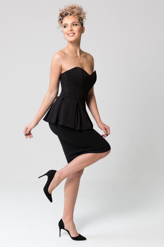Корсет с баской из трикотажной ткани на подкладе, застежка-молния на спинке.