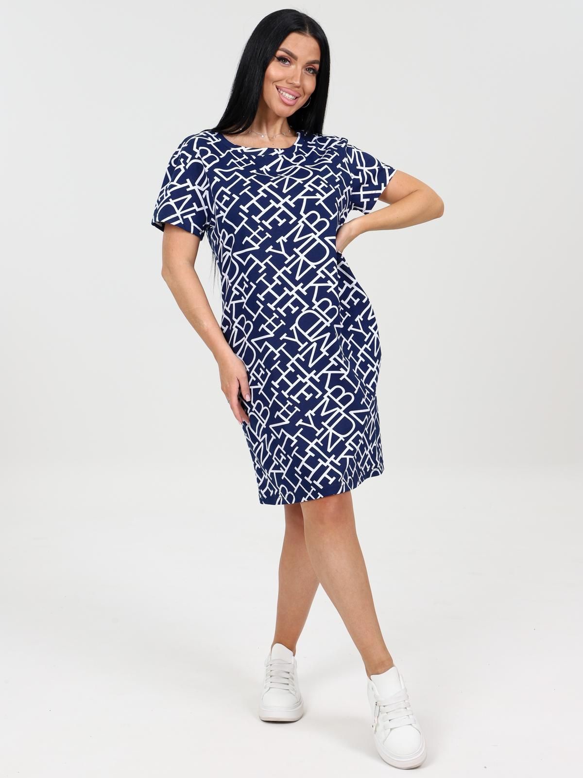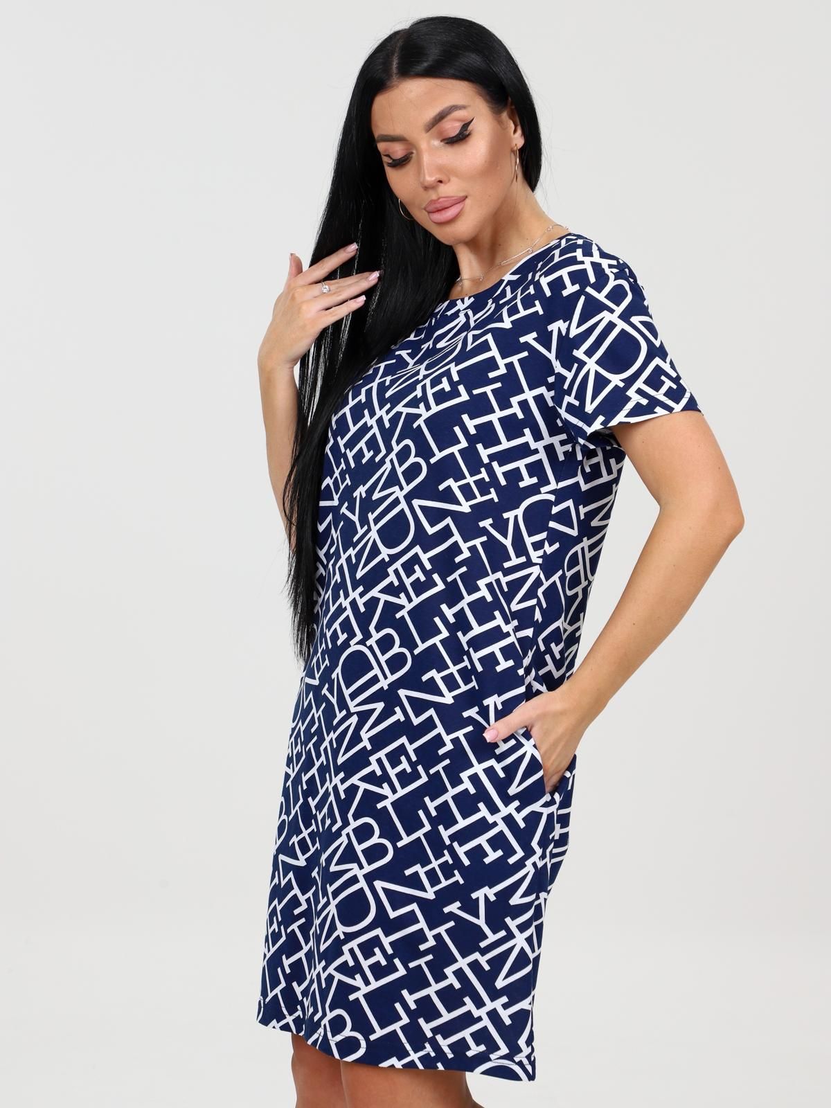 Туника слегка приталенного силуэта из набивной кулирки. Рукав втачной. Горловина обработана обтачкой в цвет туники. Низ рукава и низ изделия обработаны швом в подгибку. Имеются 2 внутренних кармана.