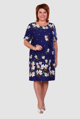 Туника слегка приталенного силуэта из набивной кулирки. Рукав втачной. Горловина обработана обтачкой в цвет туники. Низ рукава и низ изделия обработаны швом в подгибку. Имеются 2 внутренних кармана.