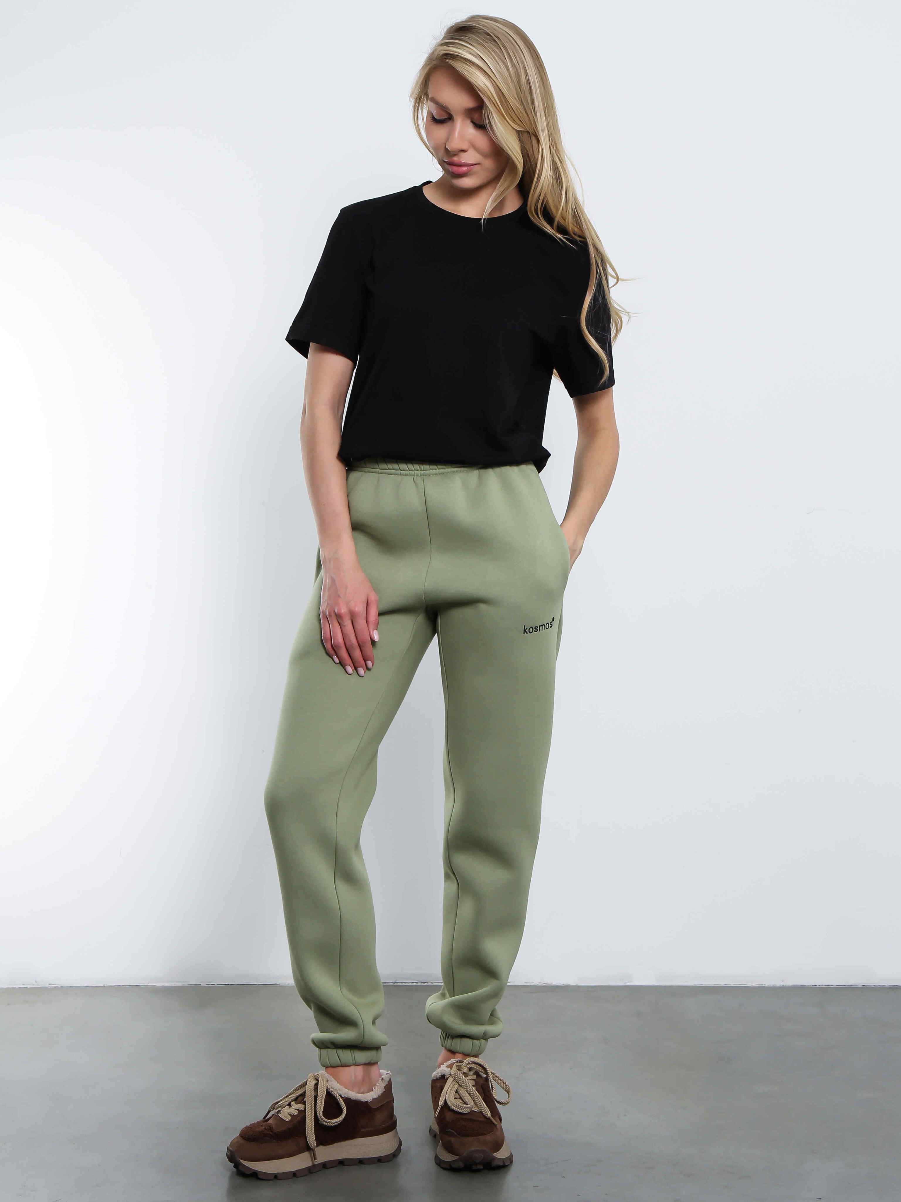 1650р2000рБрюки джоггеры женские олива с начесом