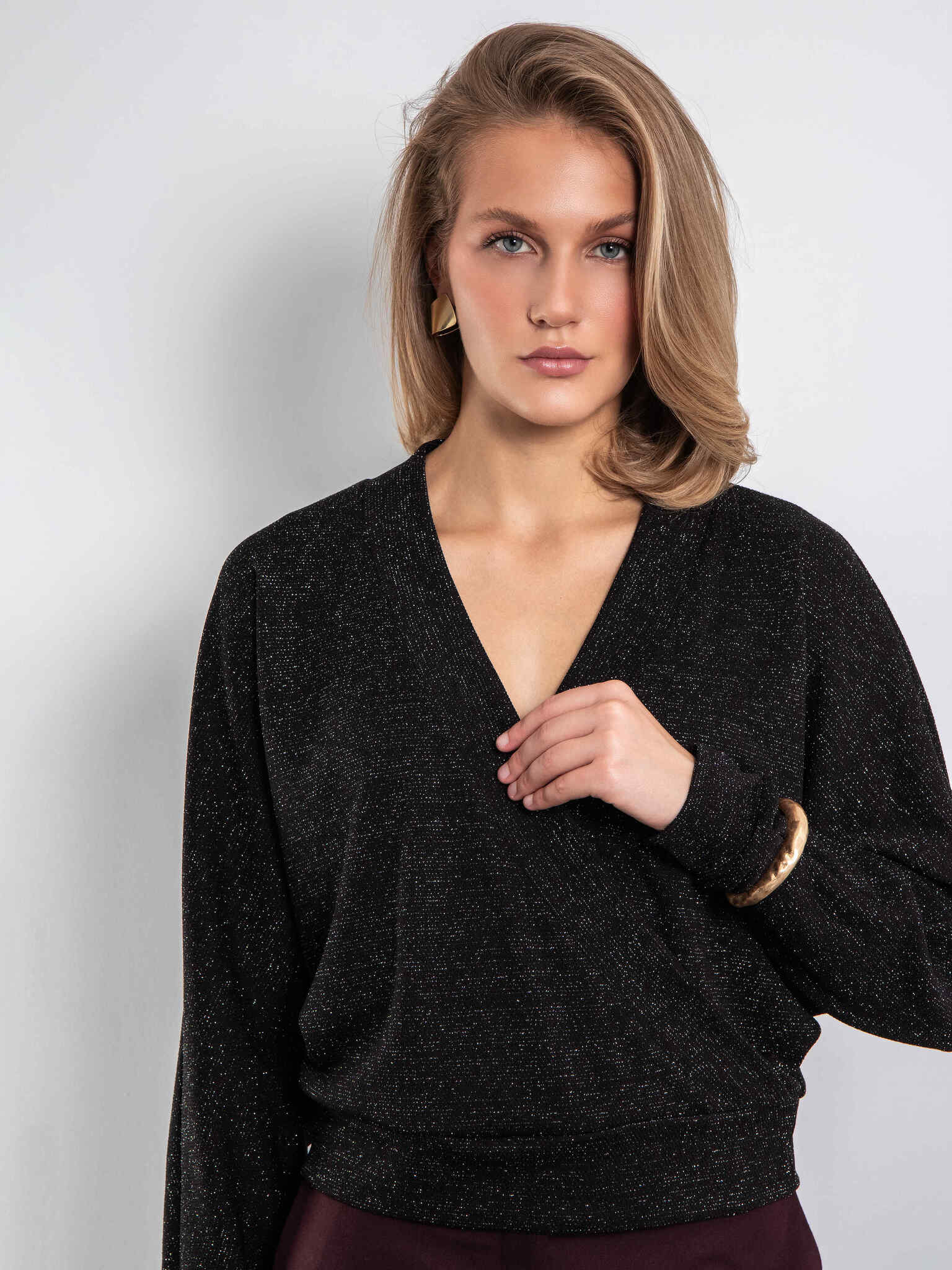 Джемпер летучая мышь (черный с люрексом)