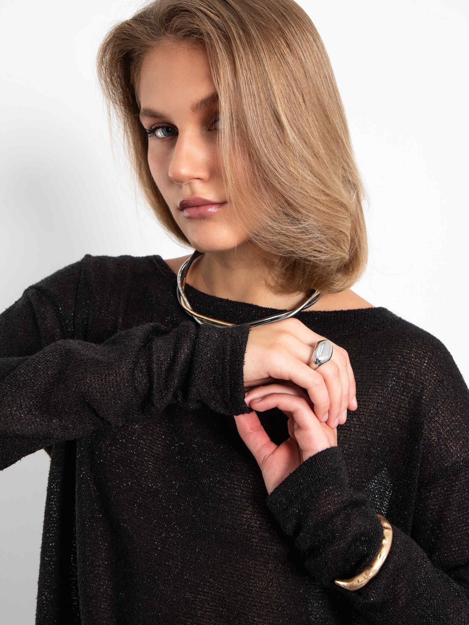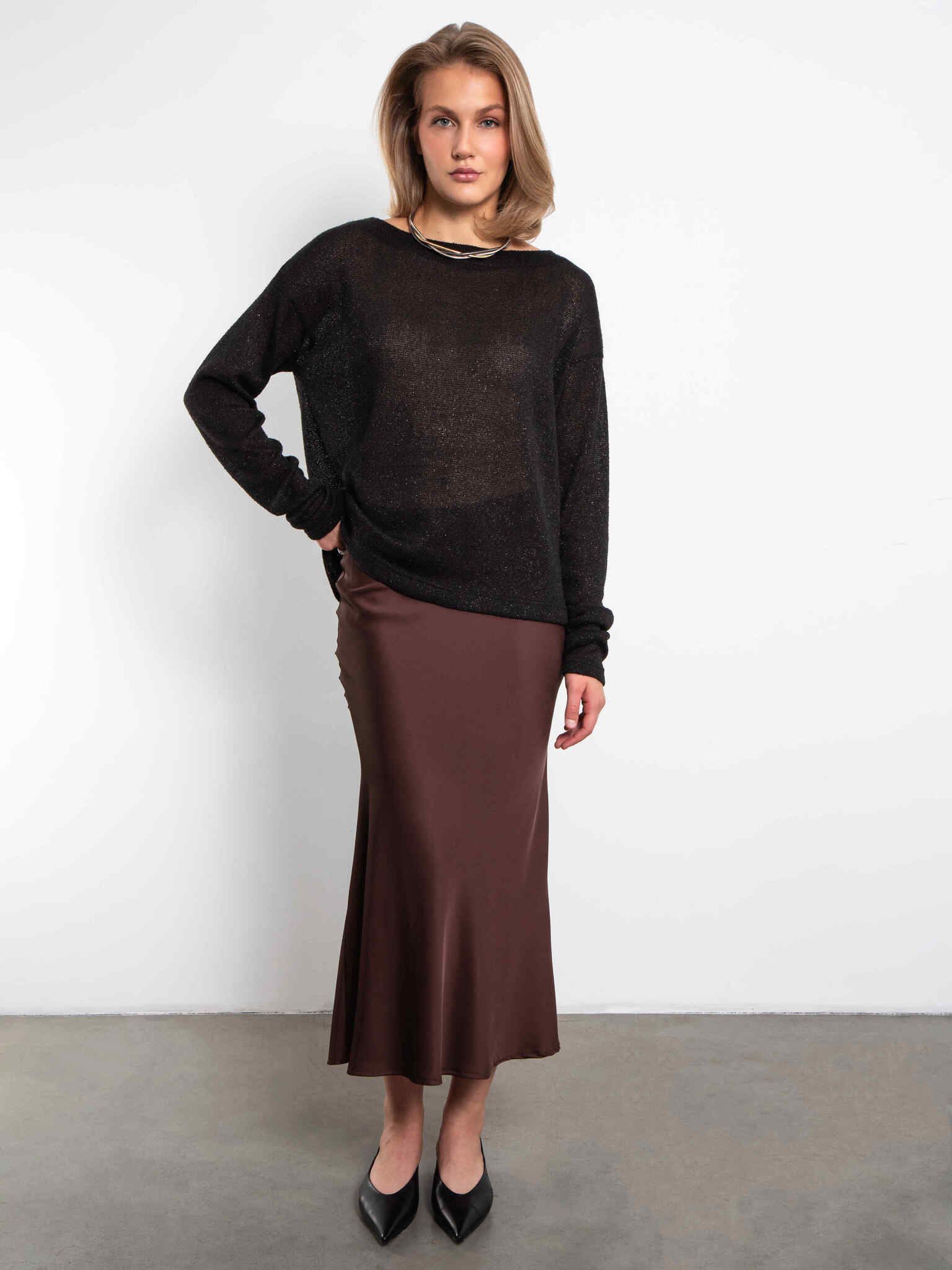 Джемпер рукав со сброкой (черный с люрексом)
