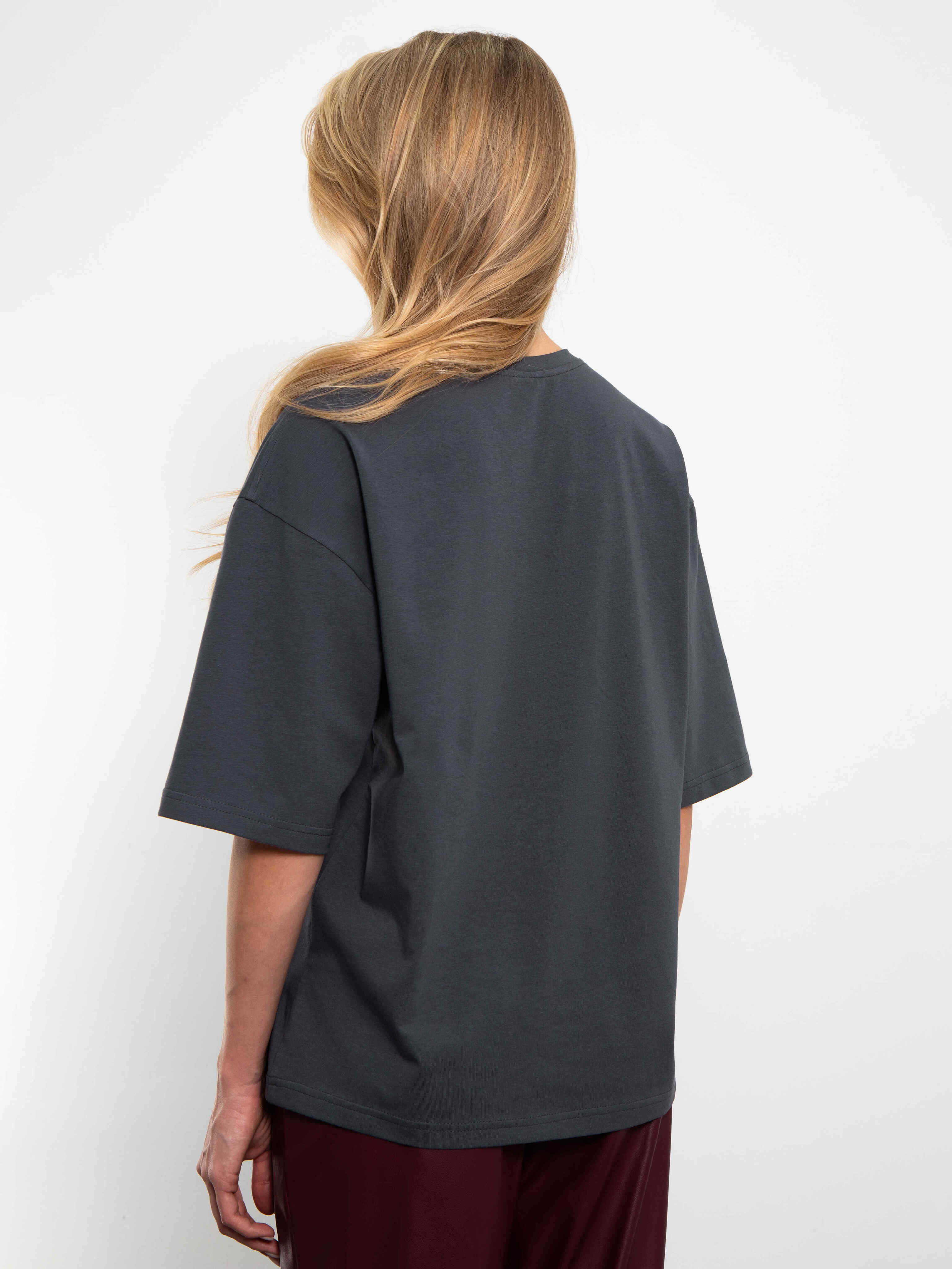 Футболка выполнена из премиального хлопка с добавлением эластана с мягкой, гладкой текстурой — материал хорошо держит форму, приятен к телу и подходит для повседневной носки в любое время года.
