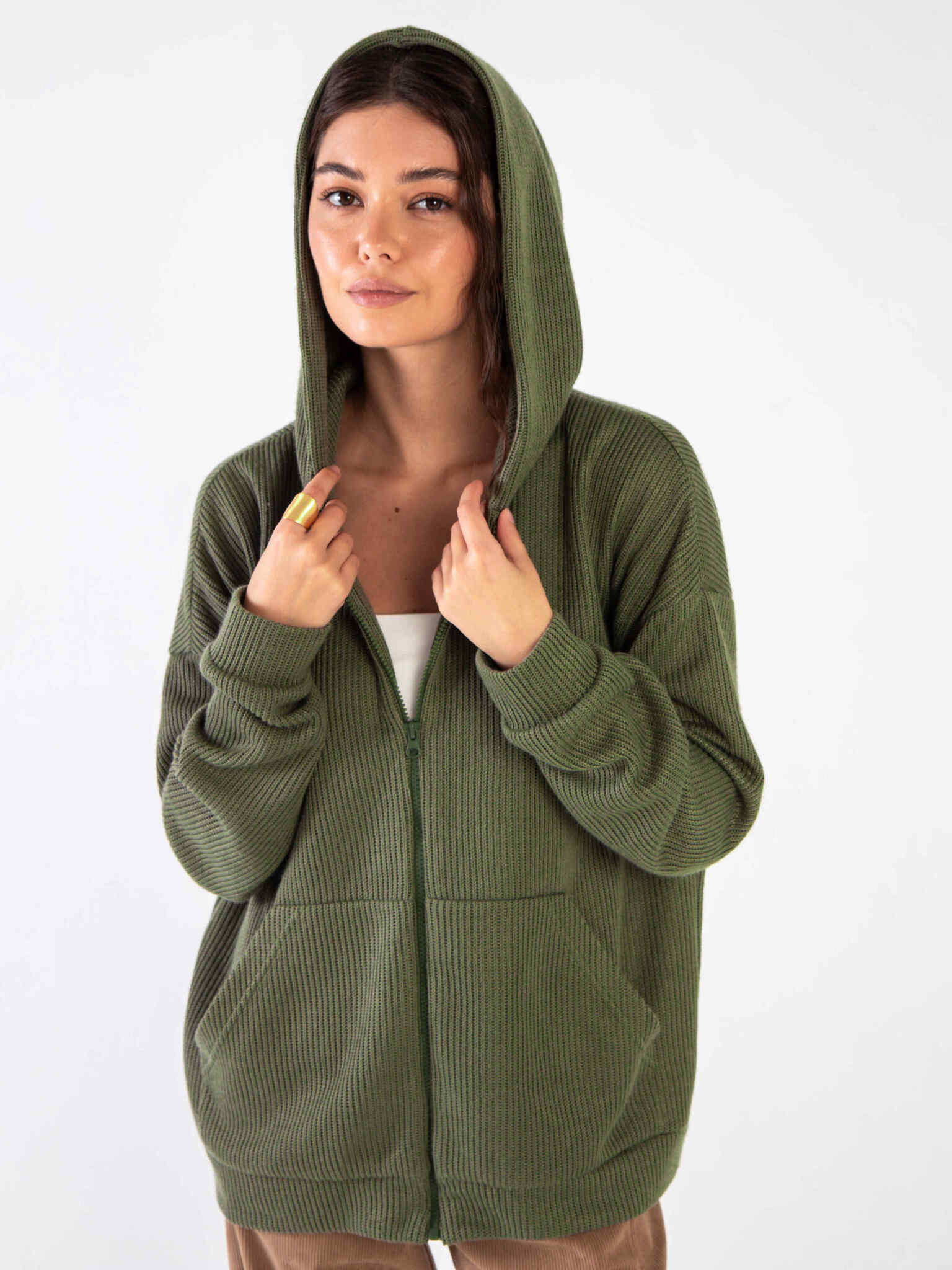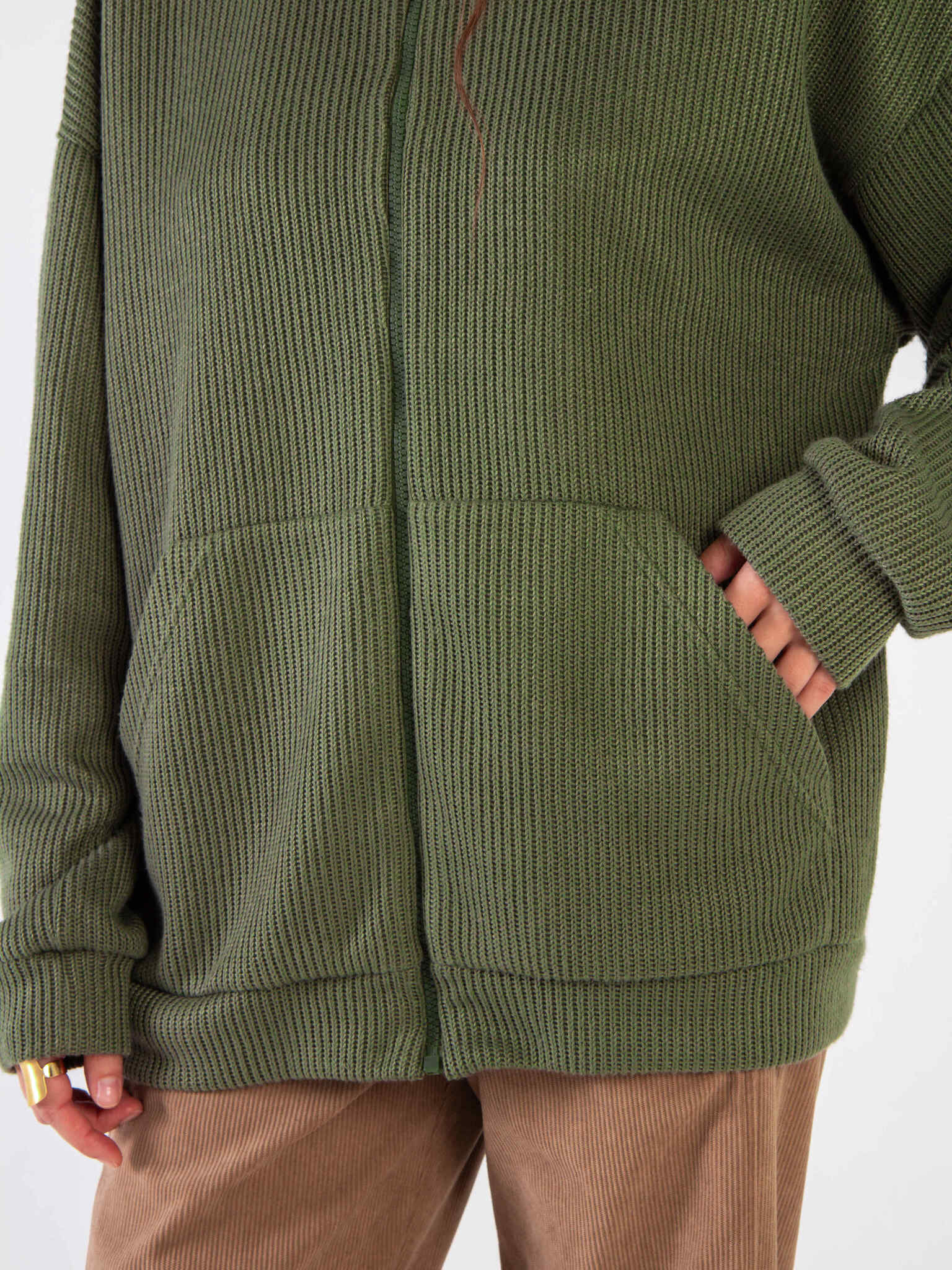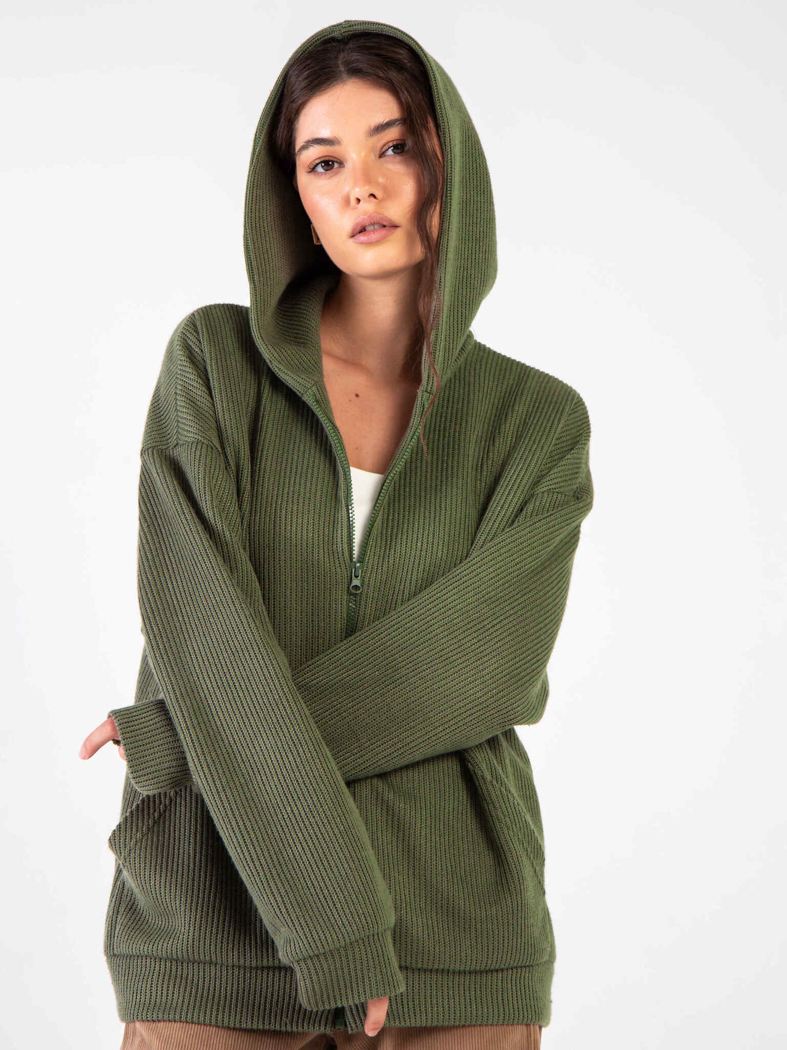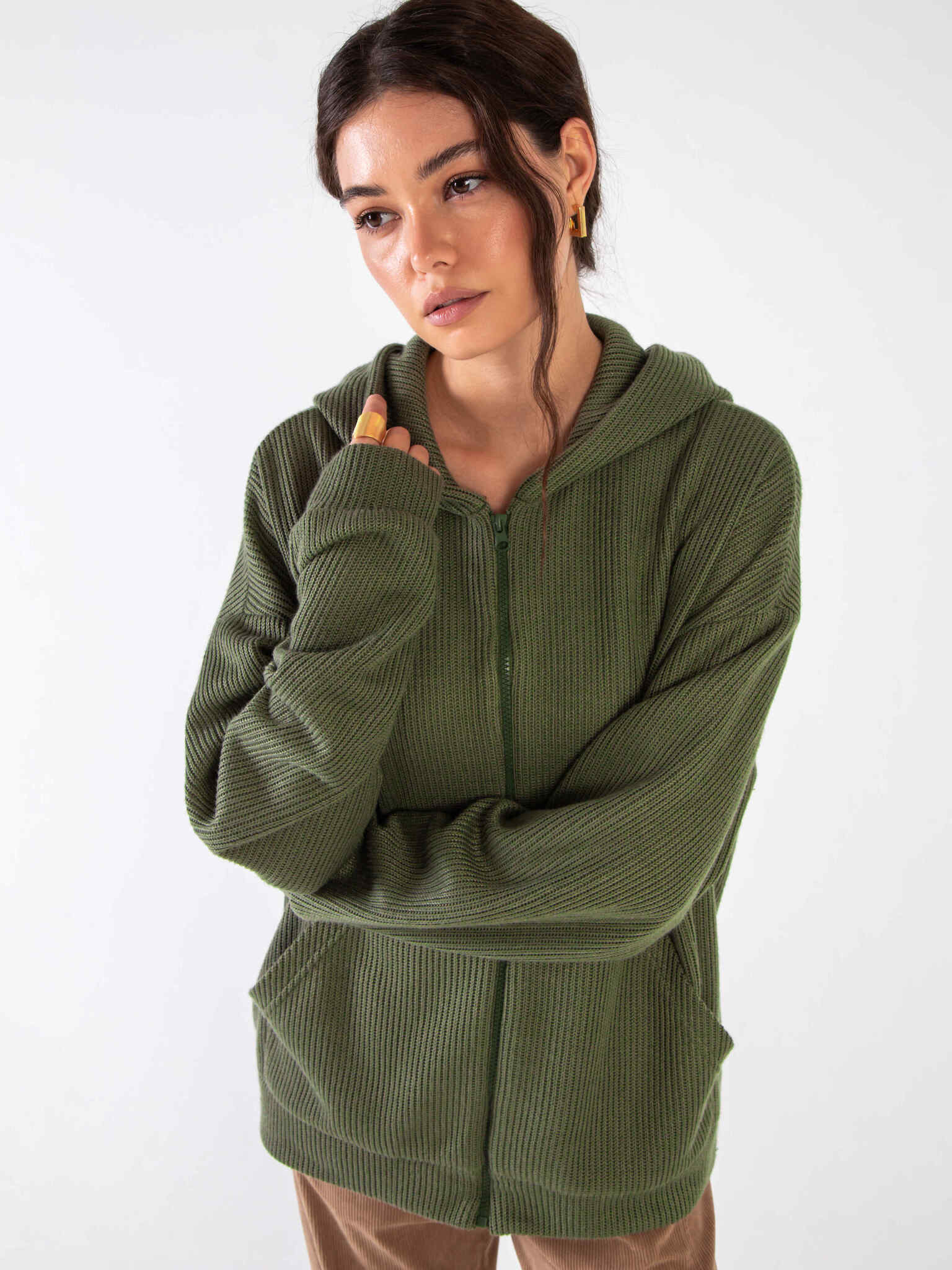 Худи на молнии из вязанного трикотажа Хаки
