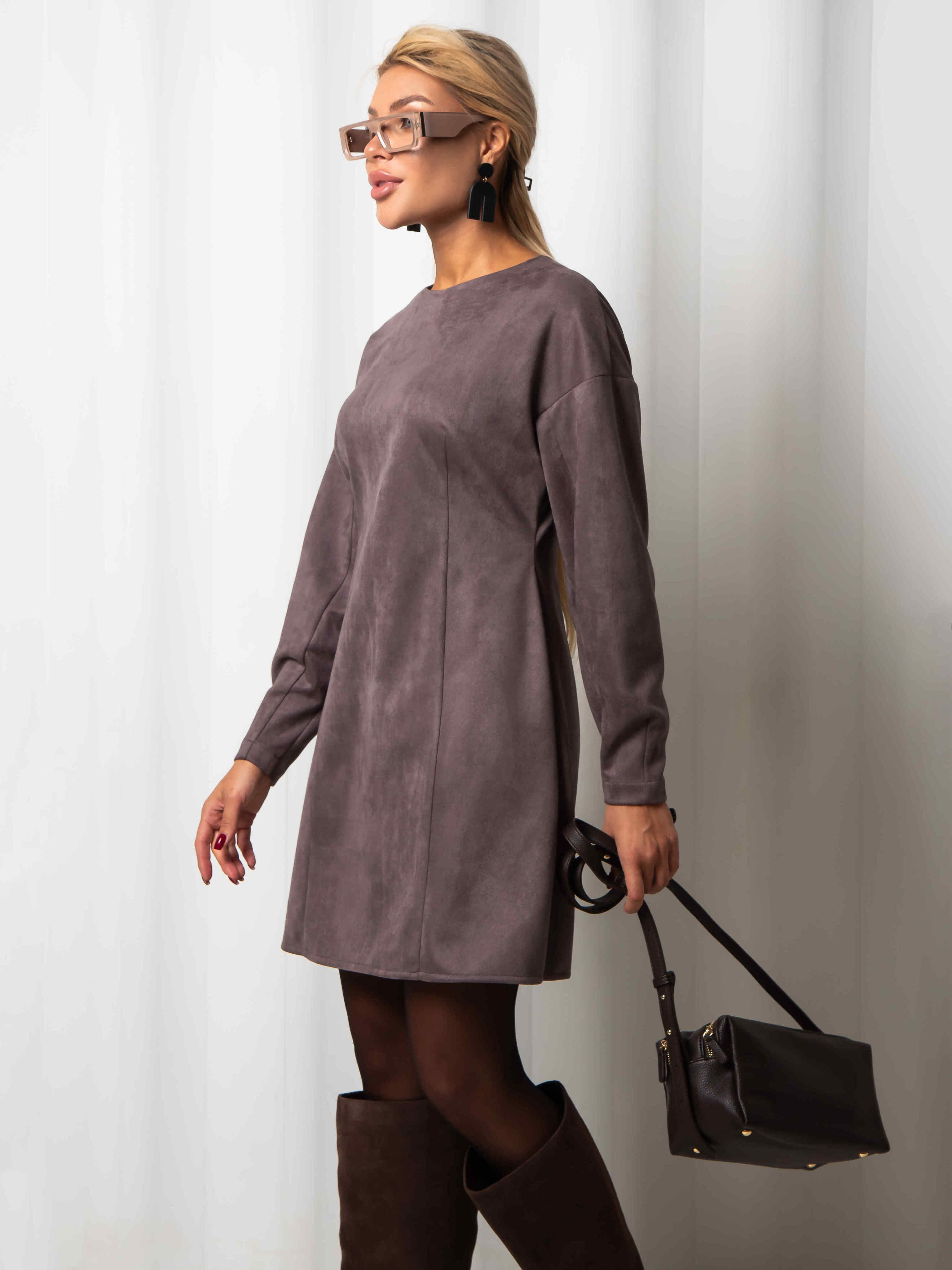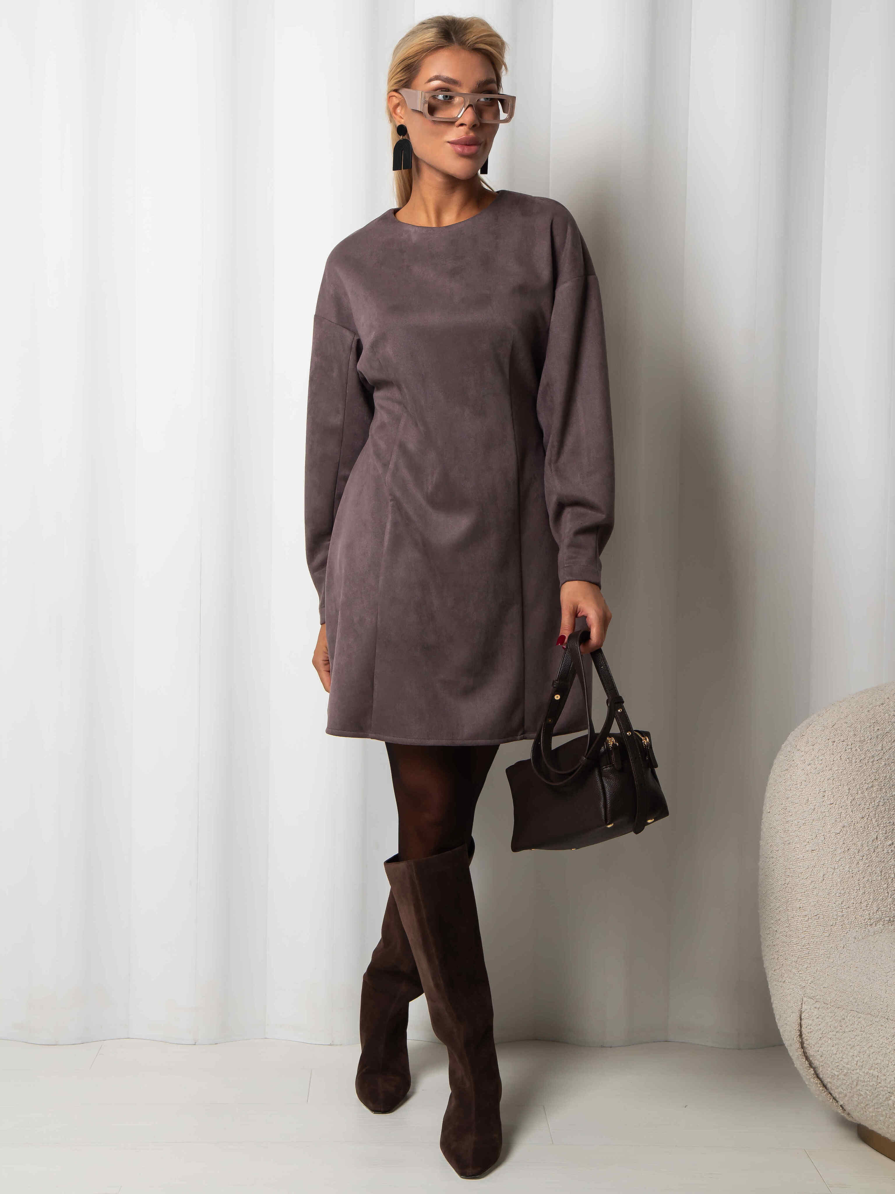 Платье из эко замши (серо-коричневое)