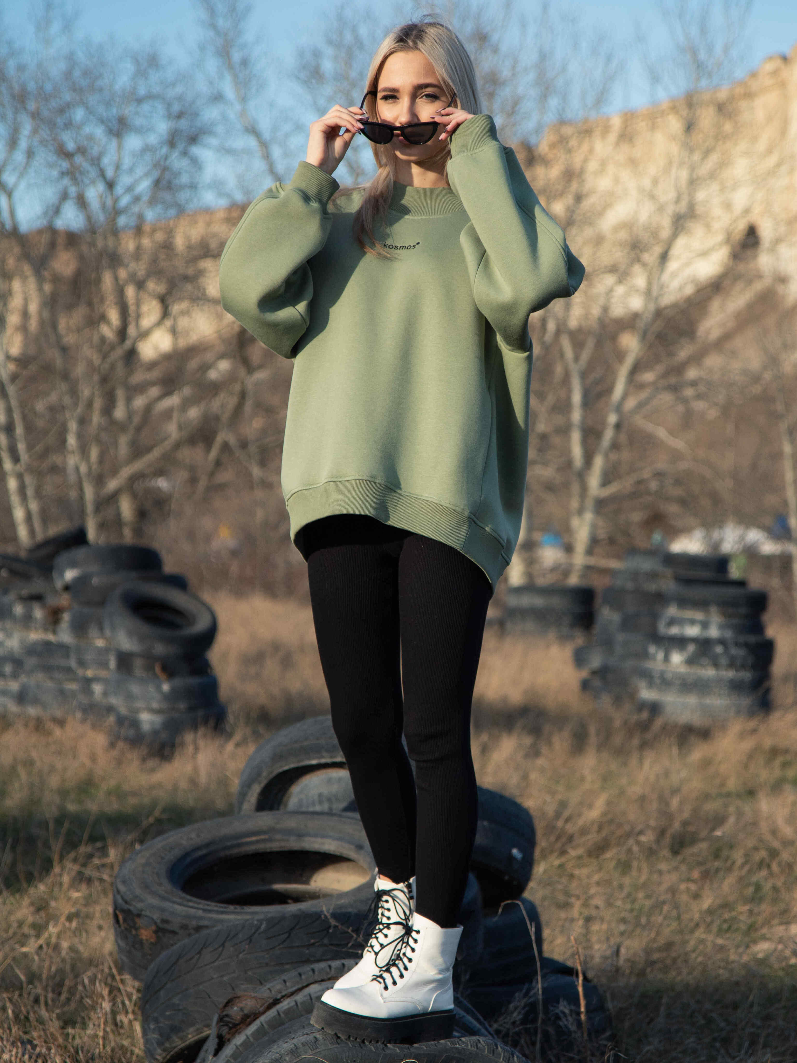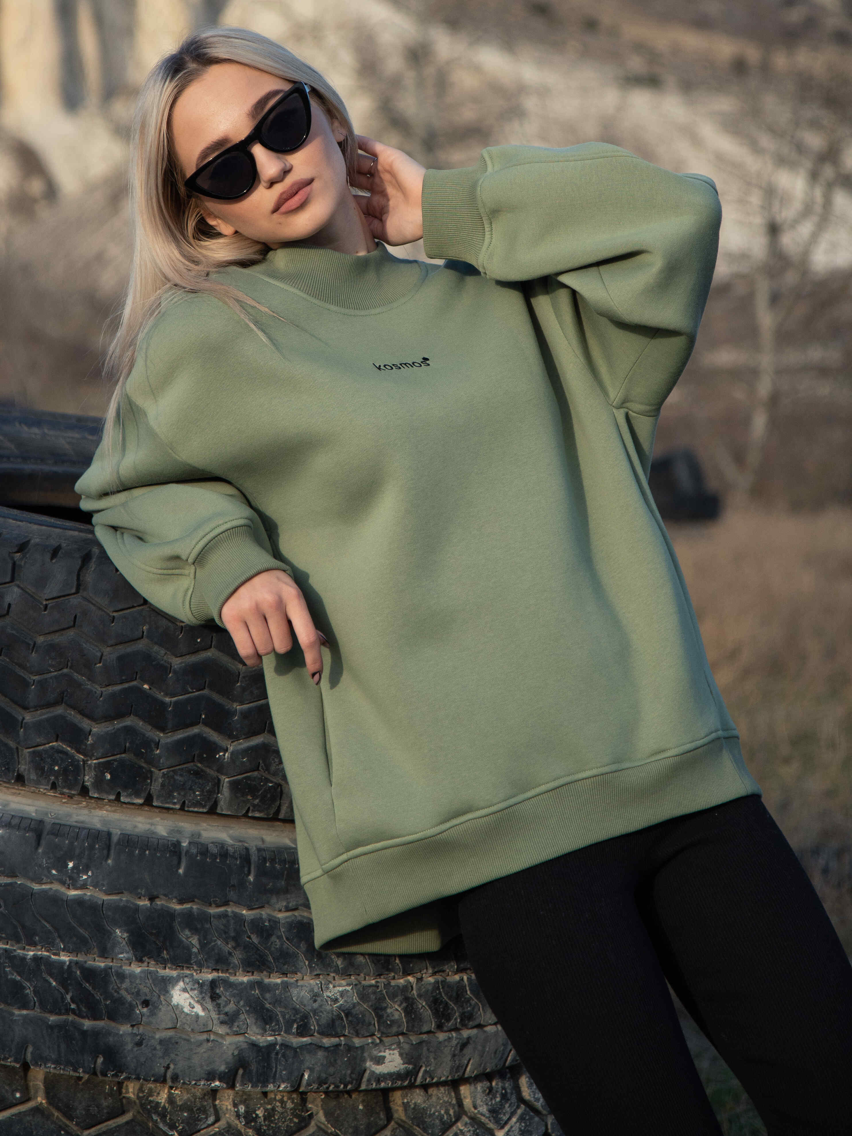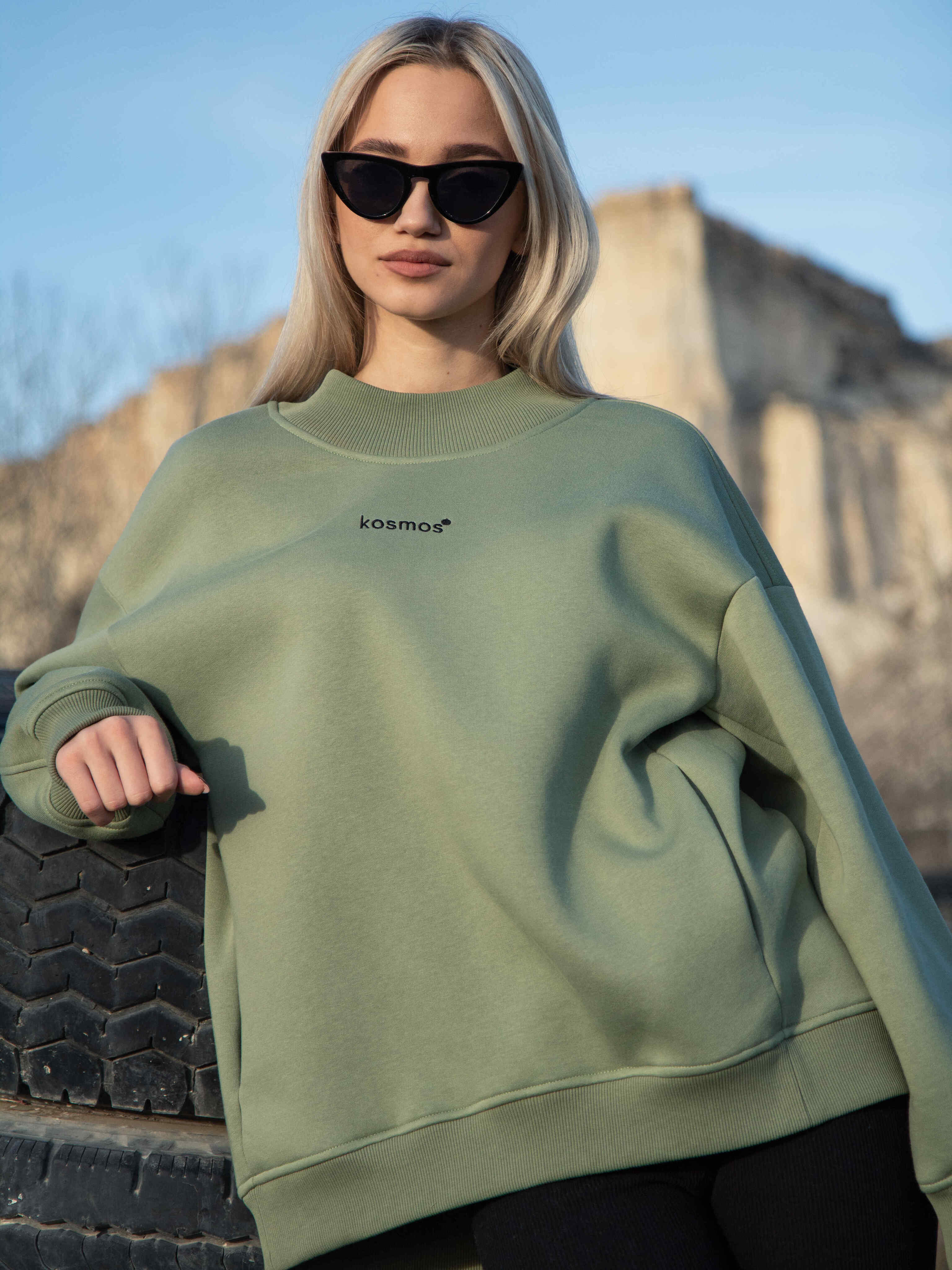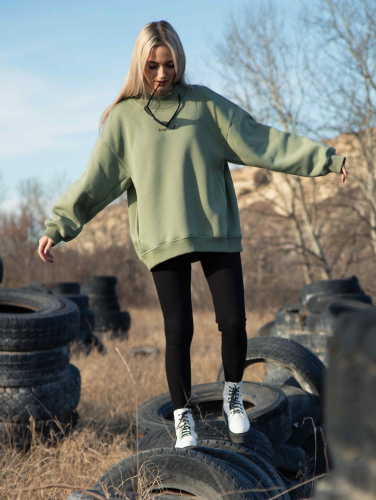 1700р2000рСвитшот женский оверсайз с начесом Олива
