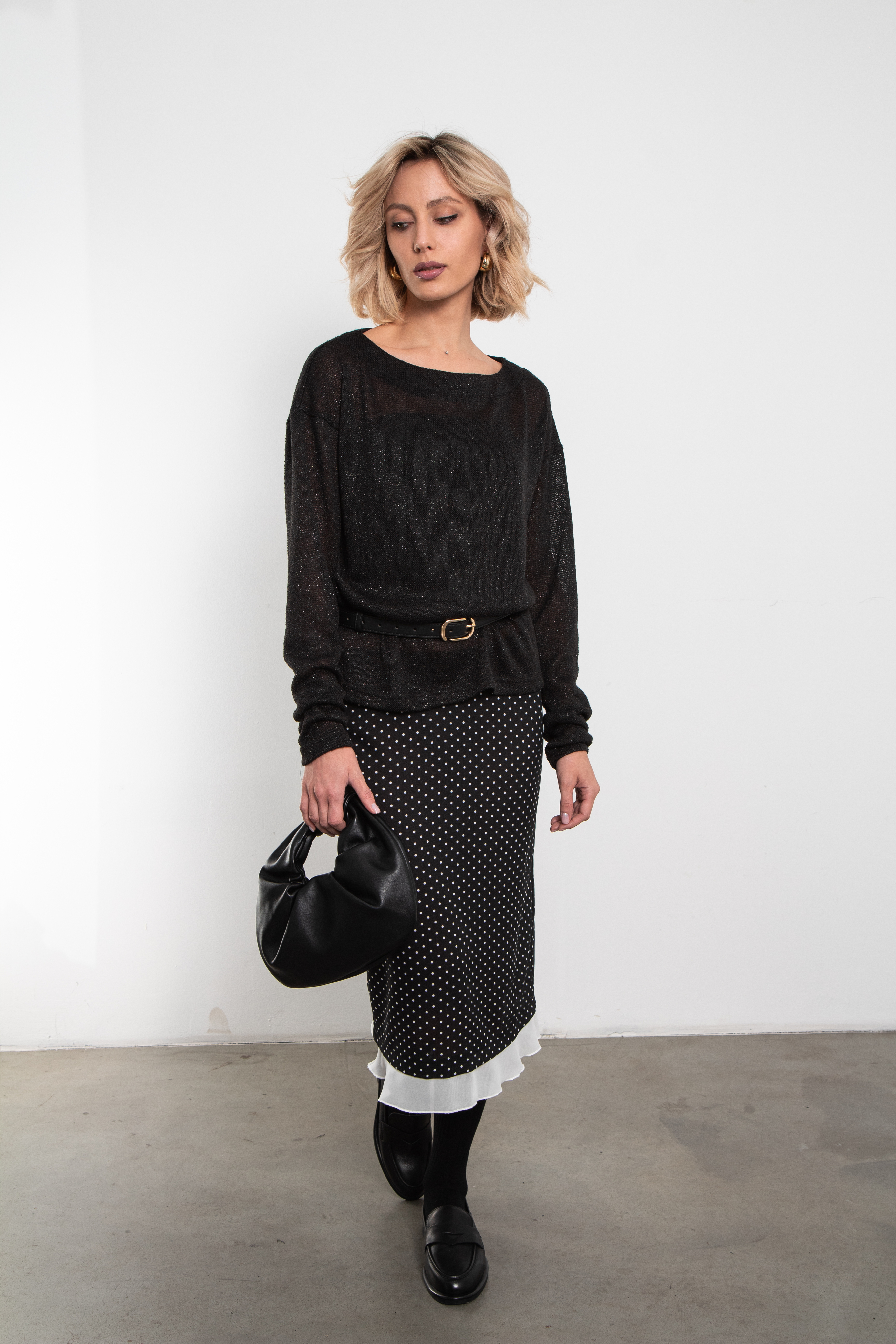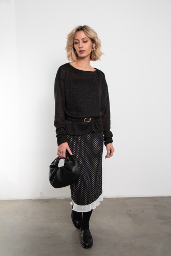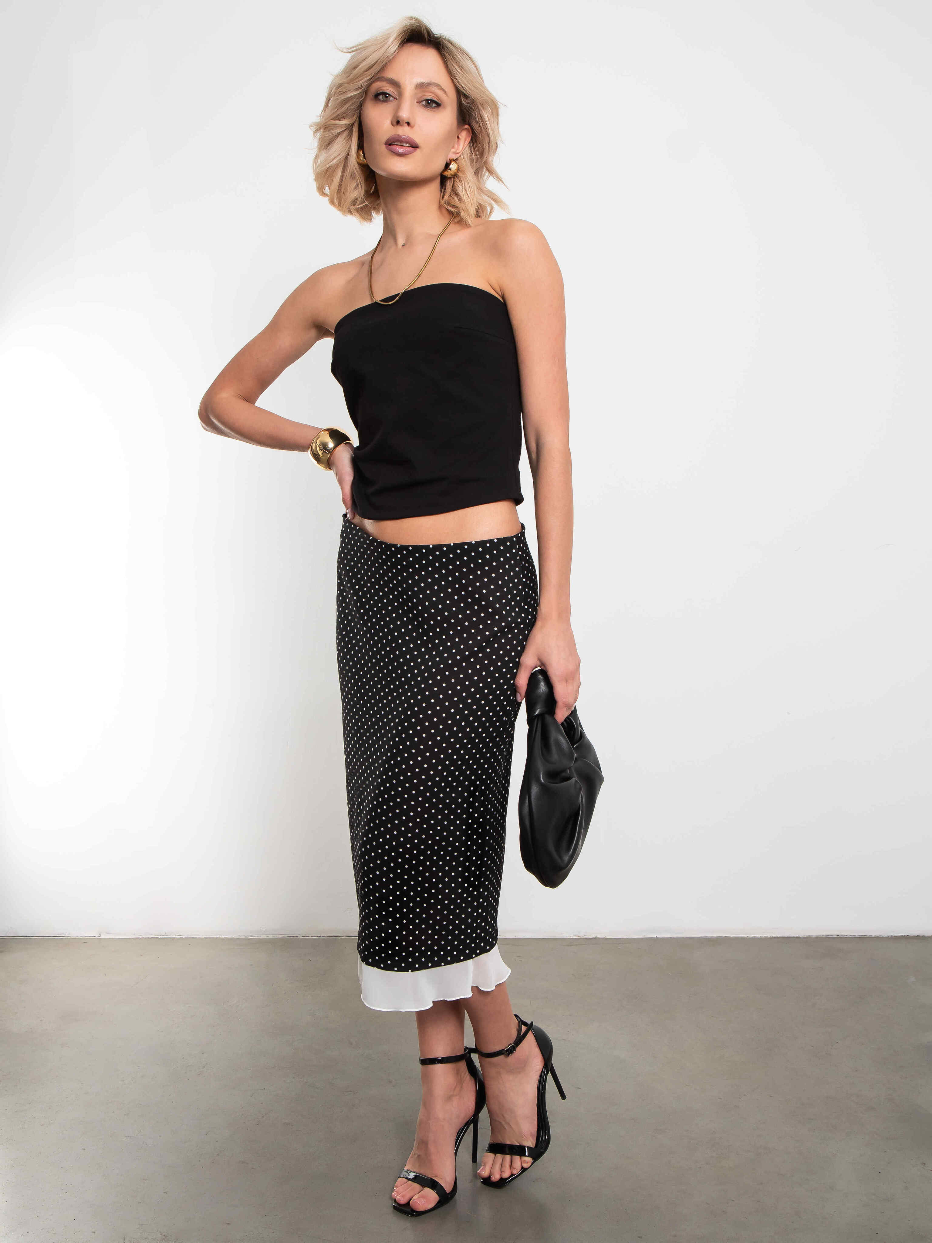 Незаменимое правило принта Горох, которое всегда работает — сочетать принт с базовым оттенком, в идеале — черным или белым. Например, черный жакет или белая футболка подойдет к юбке в горох в любом цвете.
