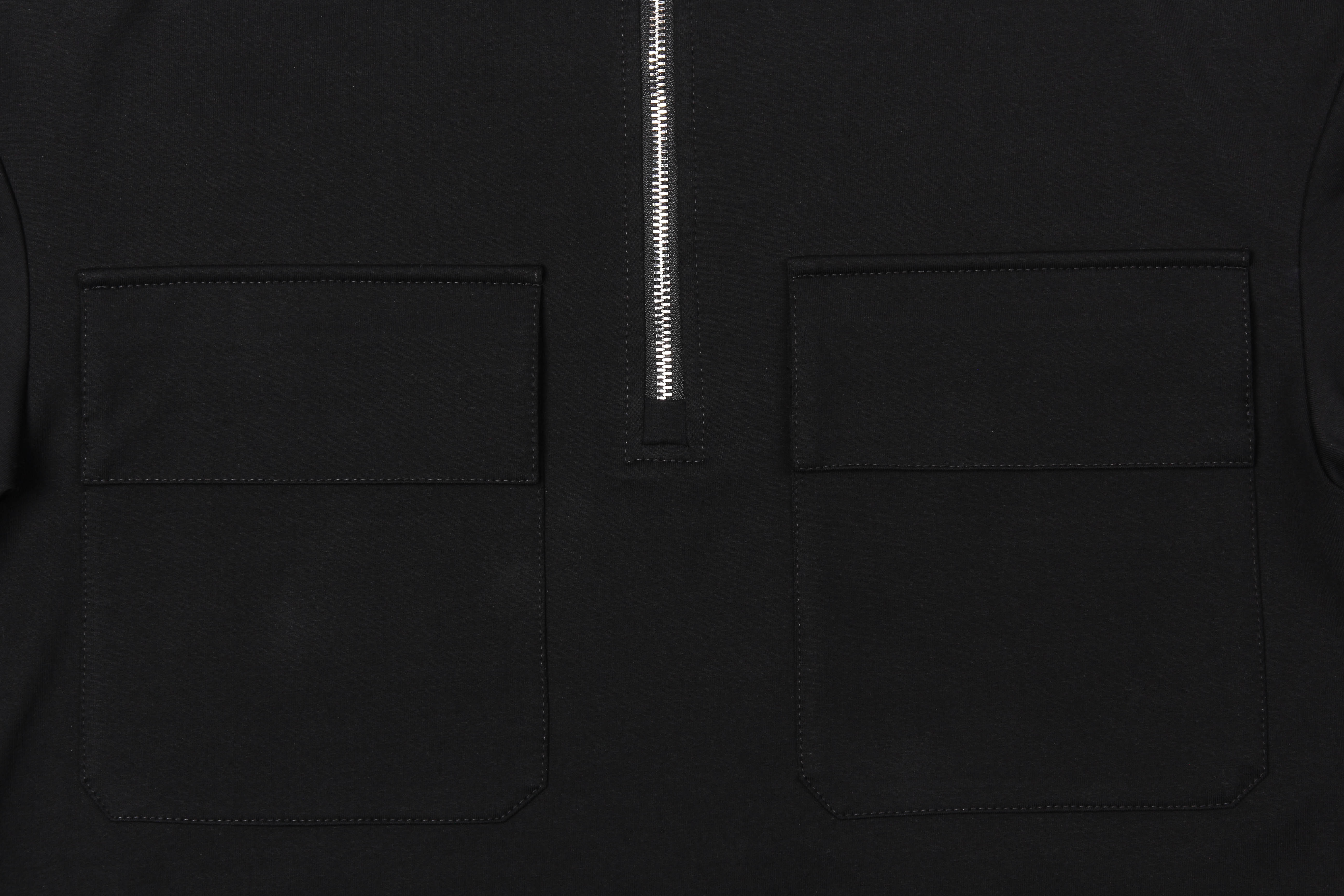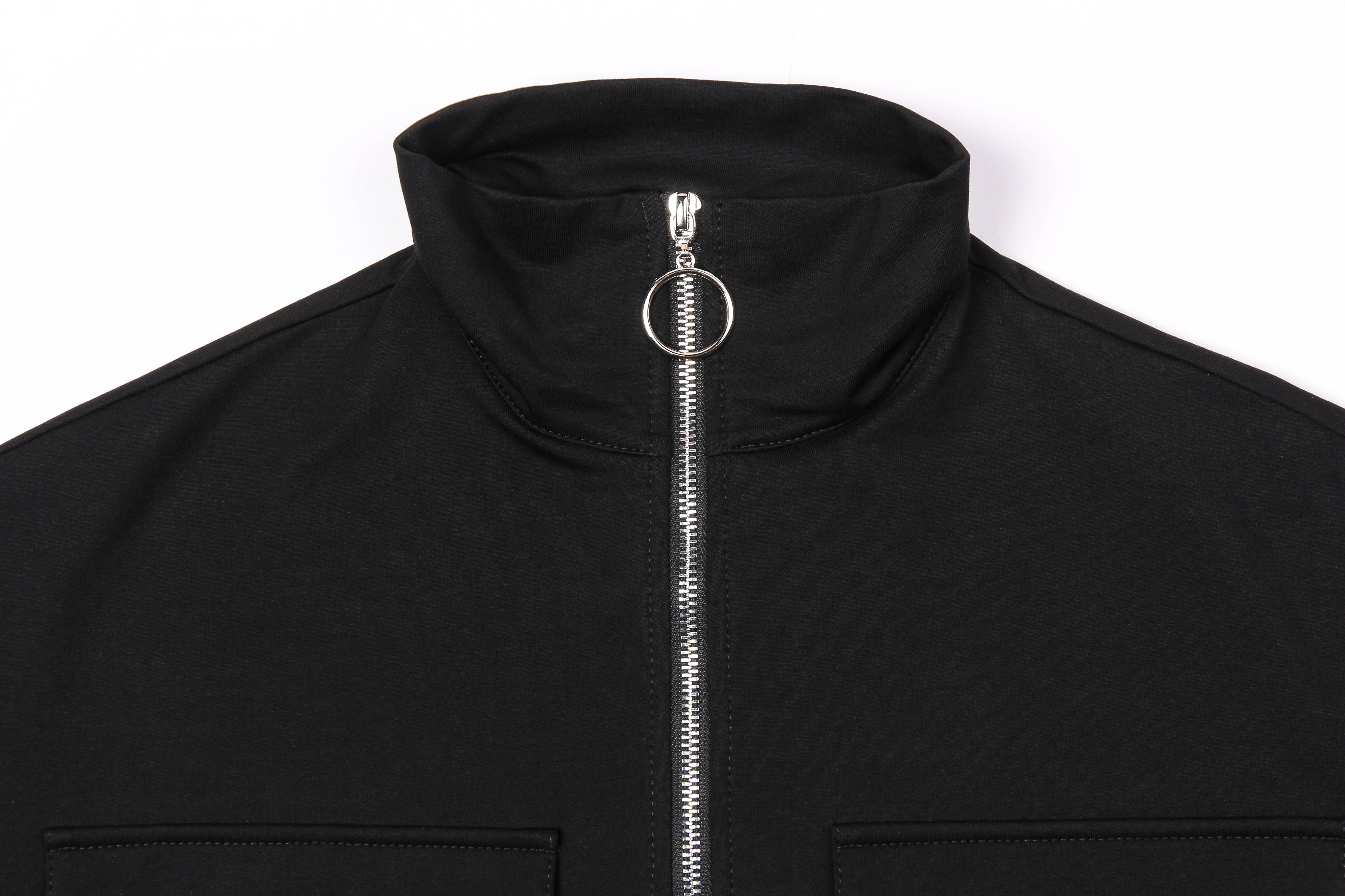 молнией до уровня груди и воротником стойкой. На груди два накладных кармана с клапанами.