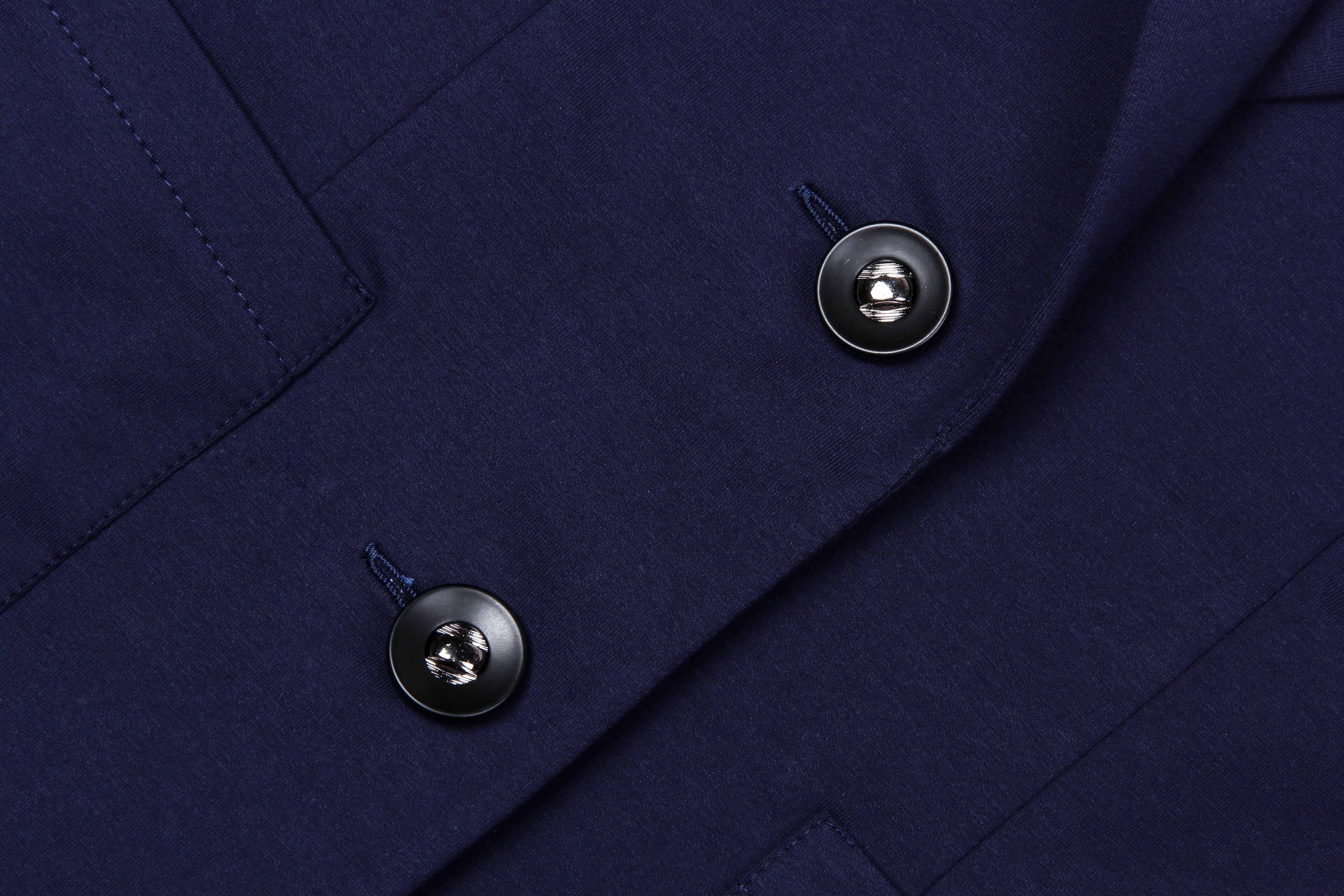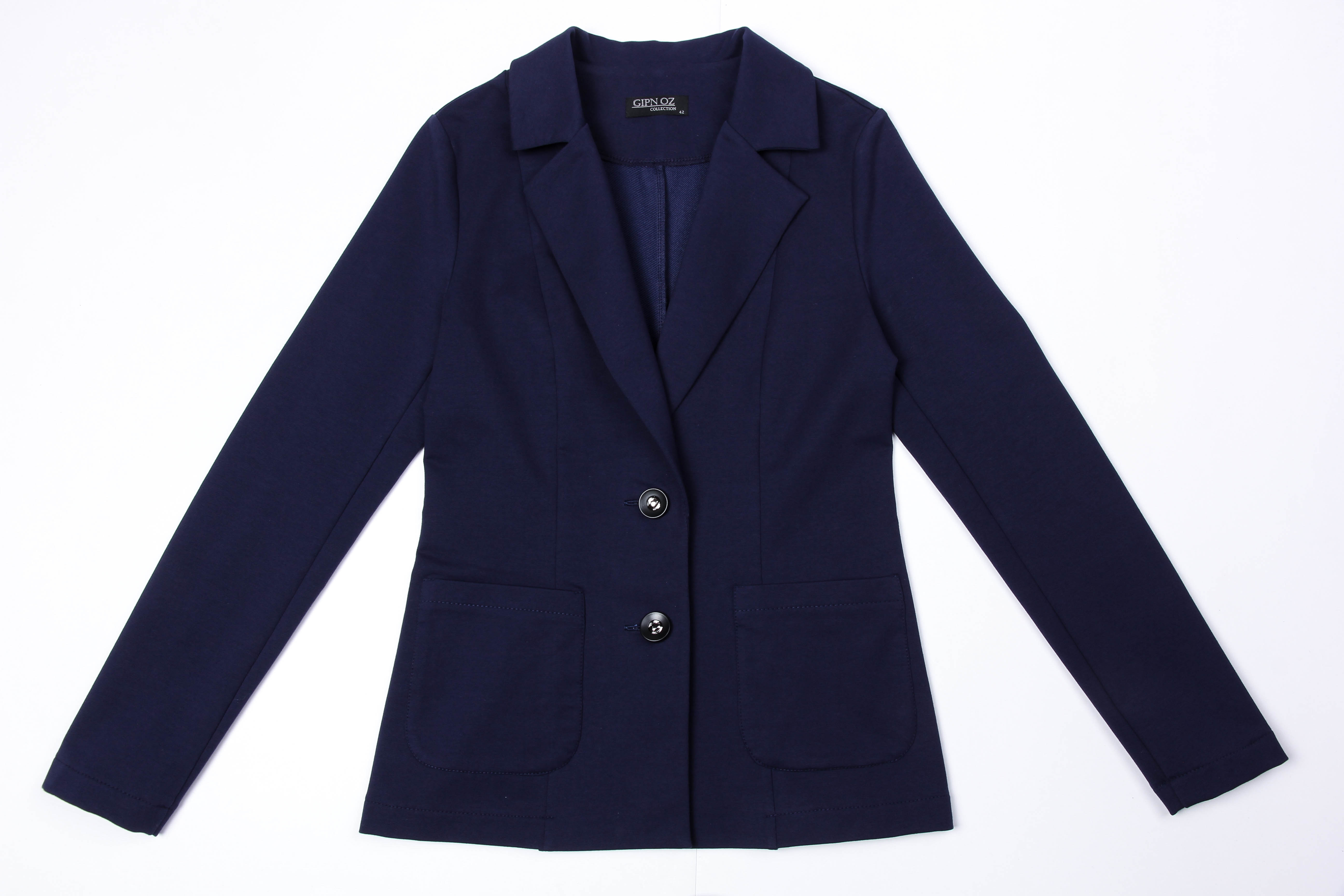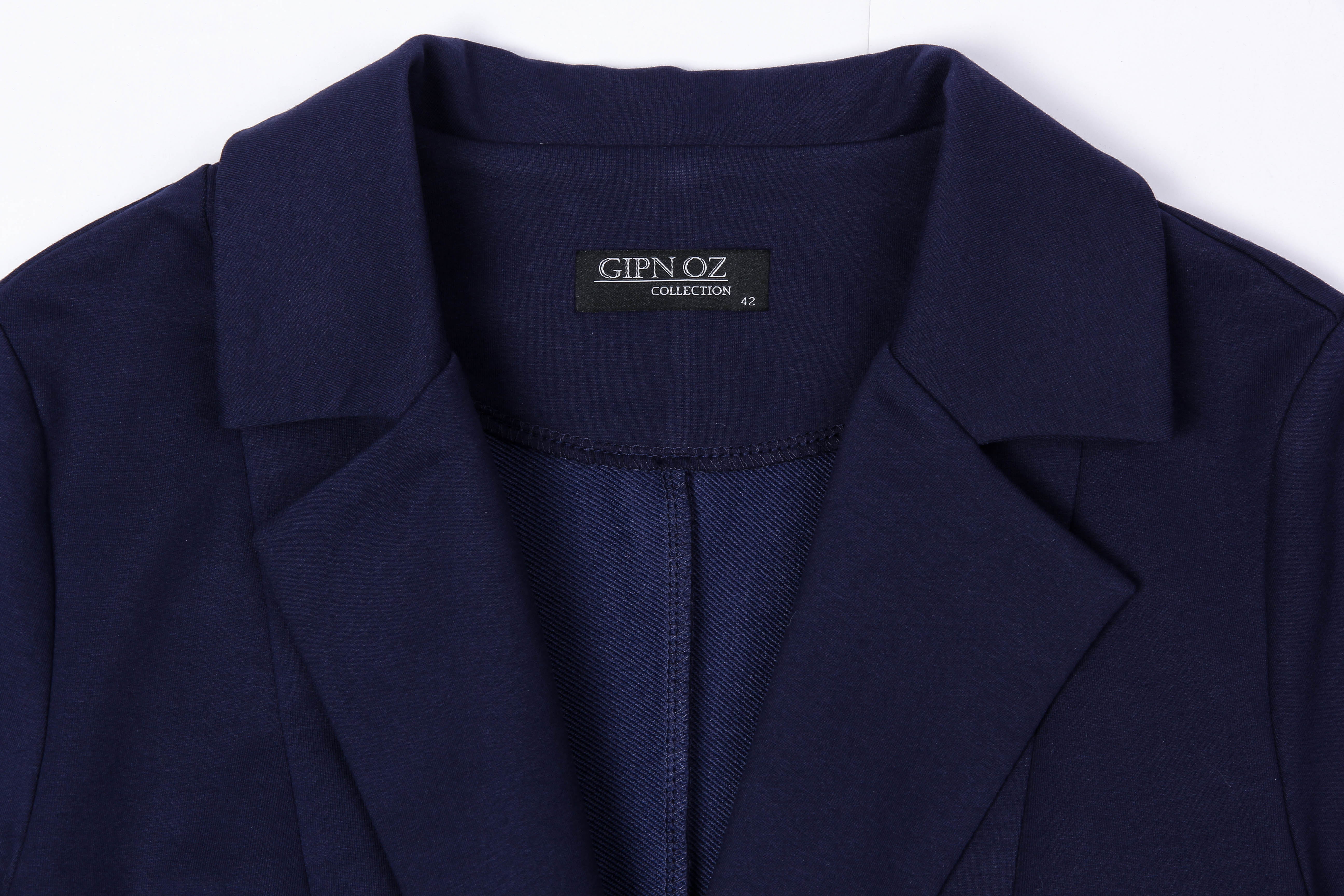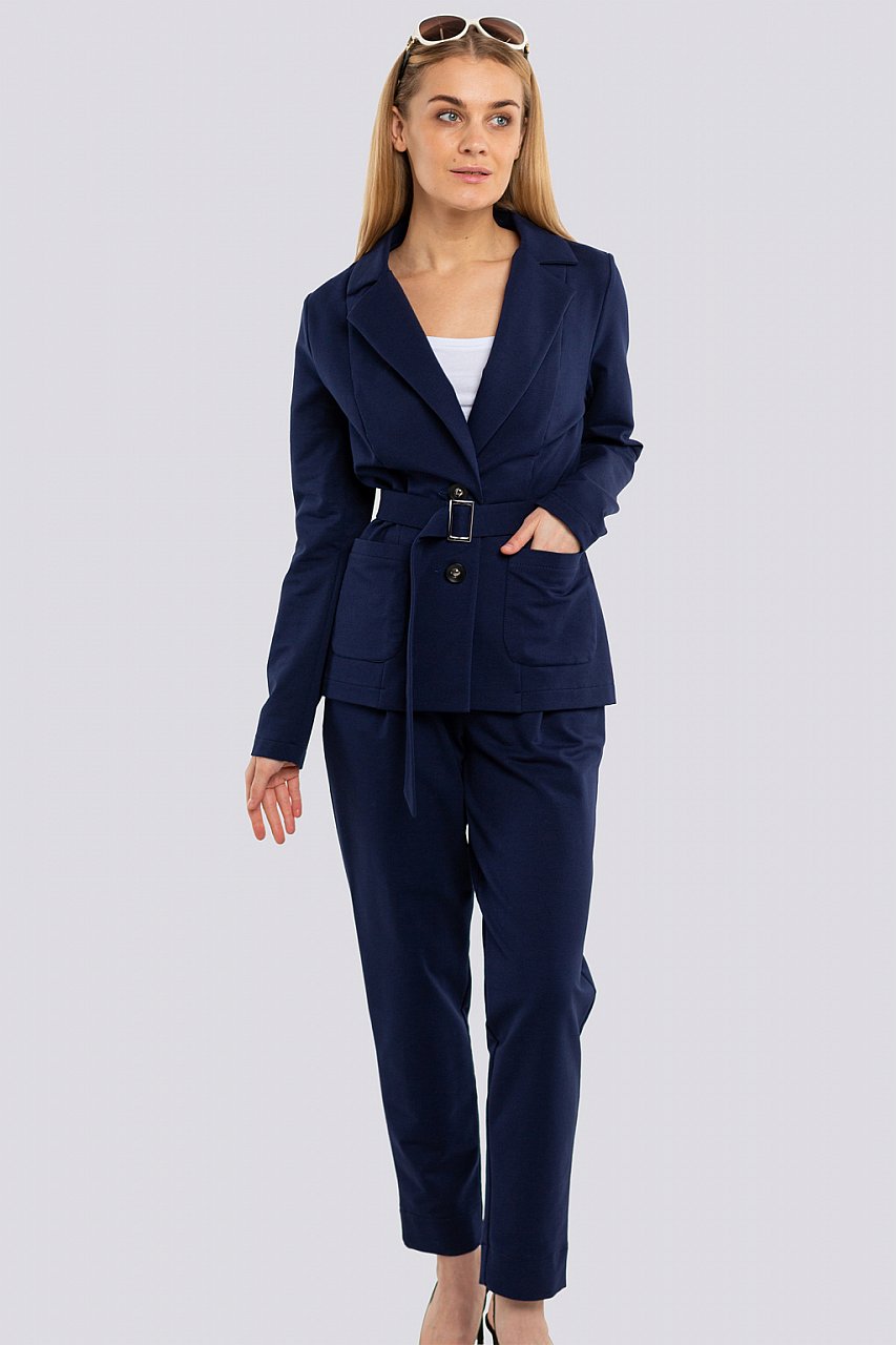 темно-синий Стильный брючный трикотажный костюм – отличный вариант деловой одежды. Жакет приталенного силуэта с английским воротником и застежкой на пуговицы. На переде накладные карманы. Талию подчеркивает пояс на пряжке. Брюки с высокой посадкой и складками на талии. Пояс на резинке. По низу брюк можно отвернуть манжеты. 75% хлопок, 20% полиэстер, 5% спандекс.