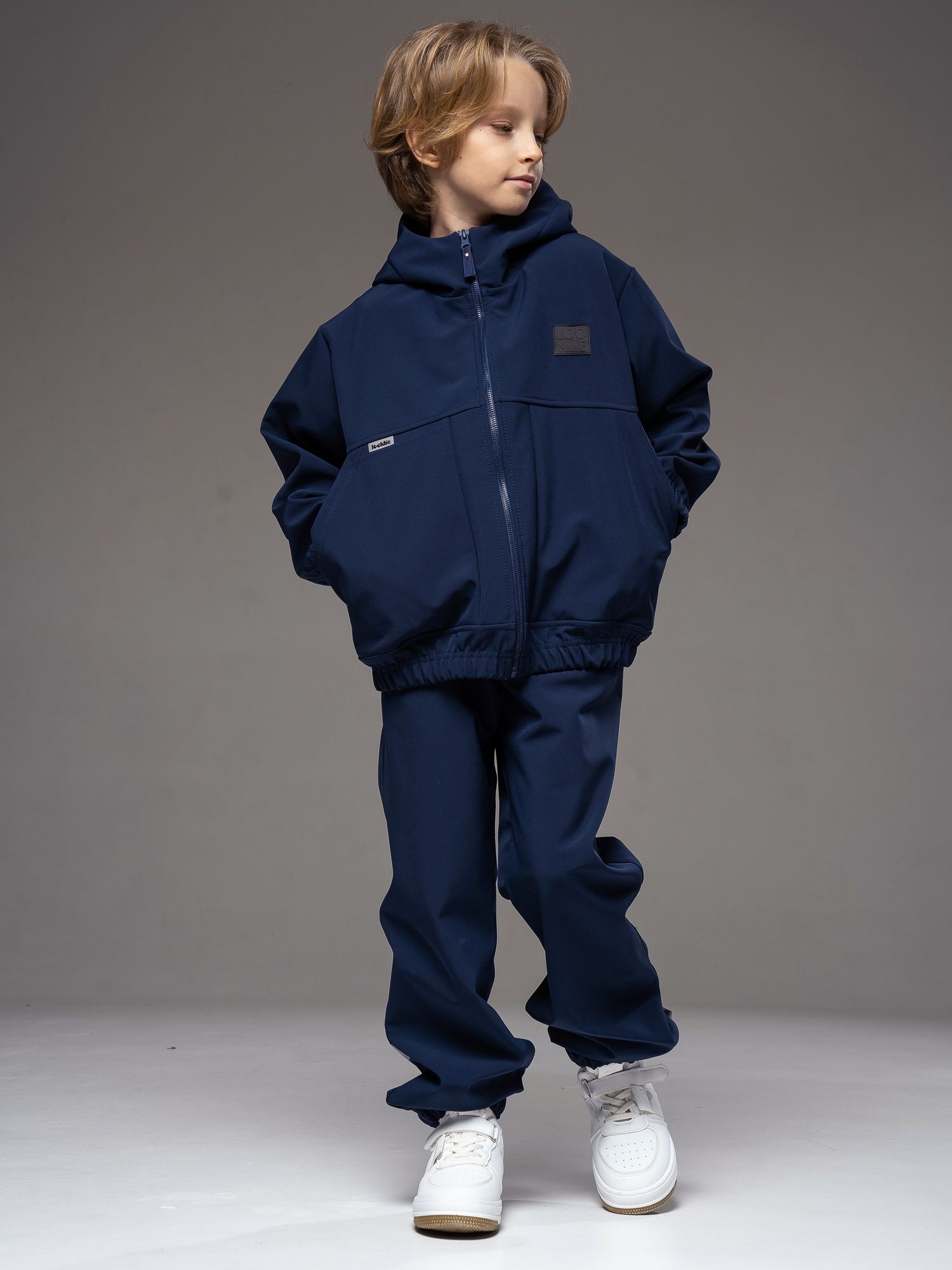 Детский костюм из софтшелла с мембранным покрытием и флисовой подкладкой из мембраны с флисовой подкладкой темно-синего цвета для девочки — идеальный вариант для активных прогулок, детского сада, школы и отдыха на свежем воздухе. Практичный детский мембранный костюм надежно защищает ребёнка от ветра, влаги и прохладной погоды, обеспечивая комфорт в течение всего дня. Костюм состоит из куртки и брюк из софтшелл. Современный мембранный материал обладает ветрозащитными и водоотталкивающими свойствами, а мягкая флисовая подкладка внутри сохраняет тепло и приятна к телу. Куртка свободного силуэта выполнена с удобной застежкой на молнии, имеет капюшон, длинные рукава и большие накладные карманы. Резинка по низу рукавов и по низу куртки предотвращает продувание и обеспечивает комфортную посадку, не сковывая движений ребёнка. Брюки прямого силуэта практичны и удобны для активных игр. Модель оснащена боковыми карманами, поясом со шнурком для регулировки объема и резинкой по низу брюк. Светоотражающая лента на задней половине брюк повышает безопасность ребёнка в тёмное время суток. Детский софтшелл-костюм отлично подходит как демисезонный костюм для детей, прогулочный костюм, костюм для активного отдыха, поездок и повседневной носки. Надёжный, тёплый и функциональный детский костюм из софтшелла — комфорт и защита вашего ребёнка в любую погоду.