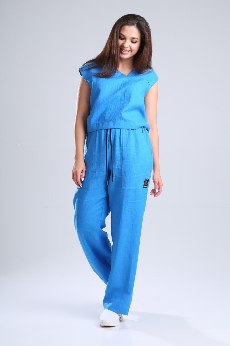 Комплект льняной от MALI в спортивном стиле, состоящий из блузы и брюк.