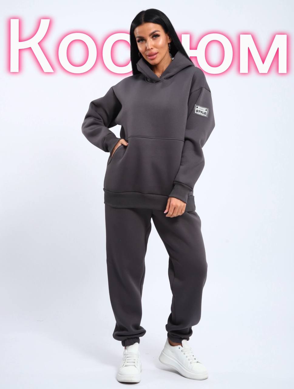 Спортивный женский костюм, материал футер 3-х нитка с начесом - идеальное сочетание комфорта и стиля для активных девушек. Этот трендовый и стильный комплект подойдет для повседневной носки, на прогулках, на работе и дома. Идеальное сочетание в себе классической модели спортивного костюма, минималистичной подачи кроя, без лишних деталей, что позволит вам легко сочетать представленные изделия с другими вещами вашего гардероба. Худи прямого кроя, с центральным, втачным и вместительным карманом на полочке. Капюшон широкий, с небольшим нахлестом по центру горловины. Горловина с отделочной строкой. Рукав длинный, втачной, среднего объема. На левом рукаве на 10 см ниже оката, пришита декоративная эмблема с силиконовой вставкой. По низу рукава пришит манжет из кашкорсе, низ худи обработан широким поясом, так же из кашкорсе. Брюки прямые с вместительными боковыми карманами. Эластичный пояс, гарантирует удобную посадку на любую фигуру. Низ брюк, обработан в подгибку на эластичной резинке. Пояс брюк прошит на специальной поясной машине. Актуальная модель представленной двойку делает ее еще более привлекательной для женщин разных возрастных категорий и параметров. Материал устойчив к истиранию, выцветанию, сминаемости за счет этого, вы всегда будете иметь аккуратный и ухоженный внешний вид, так же не будет вытягиваться в коленях и локтях. При первых носках ворс может скатываться и оставаться на белье, это проходит после 1-2 стирки. На фото модель представлена в 50-ом размере.