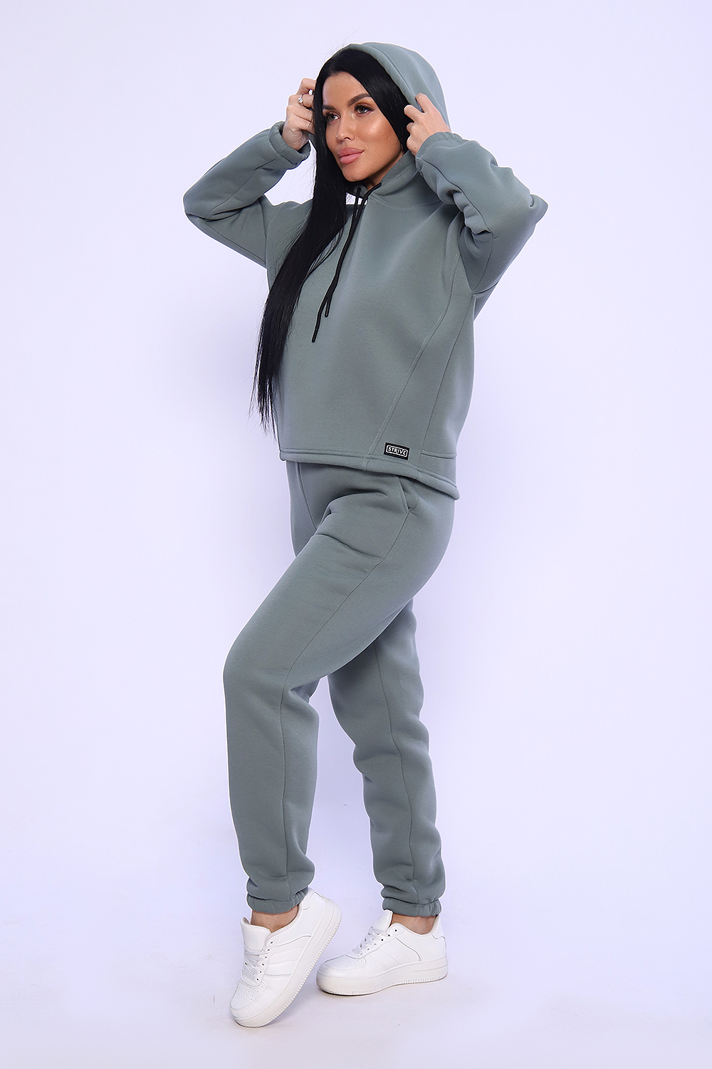 Теплый костюм выполнен из футера 3-х нитки с начесом с содержанием хлопка премиум качества. Костюм состоит из объёмной толстовки в стиле оверсайз и джогеров. Низ брюк и рукавов на толстовке обработан резинкой. Пояс брюк на резинке, для удобства по бокам расположены прорезные карманы. Перед использованием желательно постирать костюм при 30 градусах, тогда излишний ворс примнется.