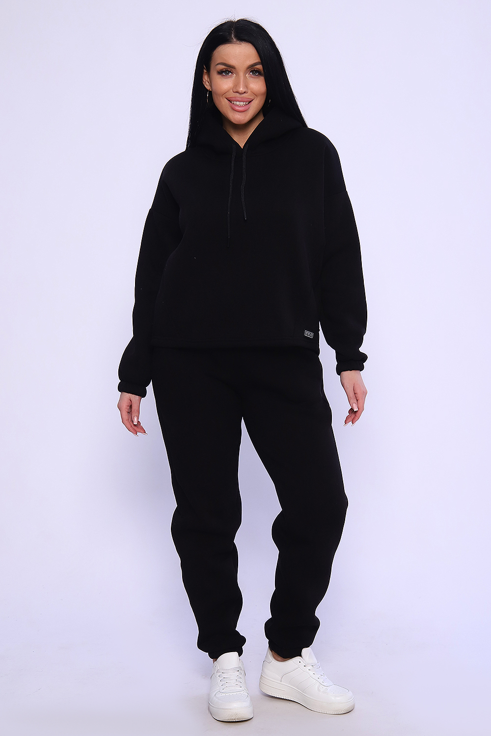 Теплый костюм выполнен из футера 3-х нитки с начесом с содержанием хлопка премиум качества. Костюм состоит из объёмной толстовки в стиле оверсайз и джогеров. Низ брюк и рукавов на толстовке обработан резинкой. Пояс брюк на резинке, для удобства по бокам расположены прорезные карманы. Перед использованием желательно постирать костюм при 30 градусах, тогда излишний ворс примнется.