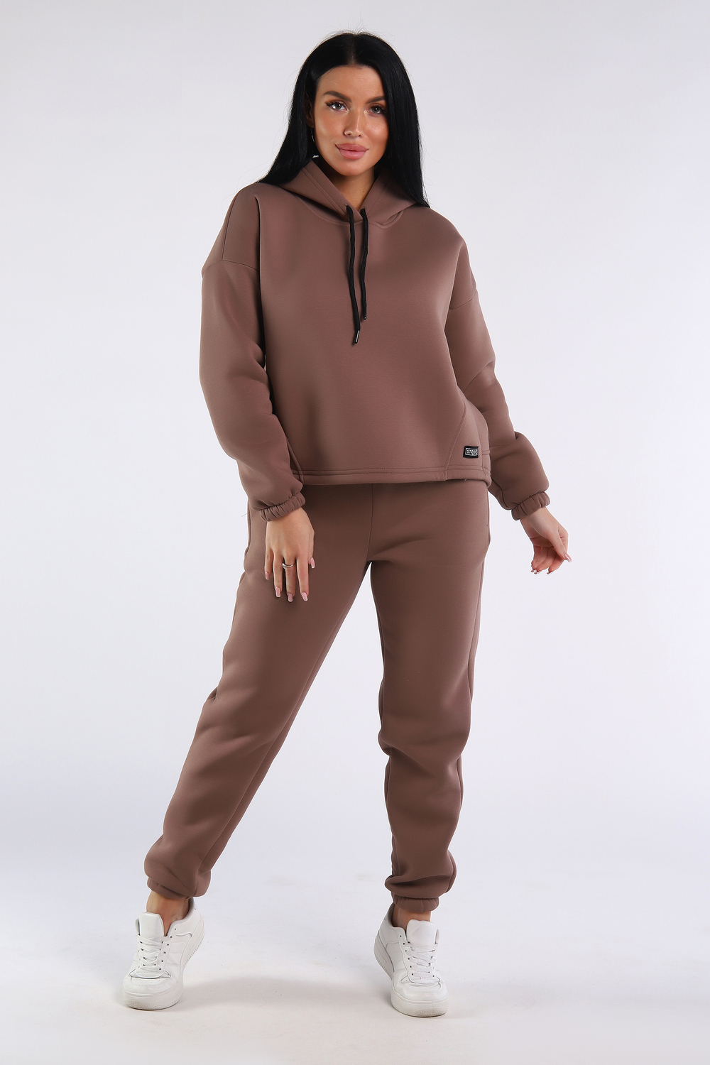 Теплый костюм выполнен из футера 3-х нитки с начесом с содержанием хлопка премиум качества. Костюм состоит из объёмной толстовки в стиле оверсайз и джогеров. Низ брюк и рукавов на толстовке обработан резинкой. Пояс брюк на резинке, для удобства по бокам расположены прорезные карманы. Перед использованием желательно постирать костюм при 30 градусах, тогда излишний ворс примнется.