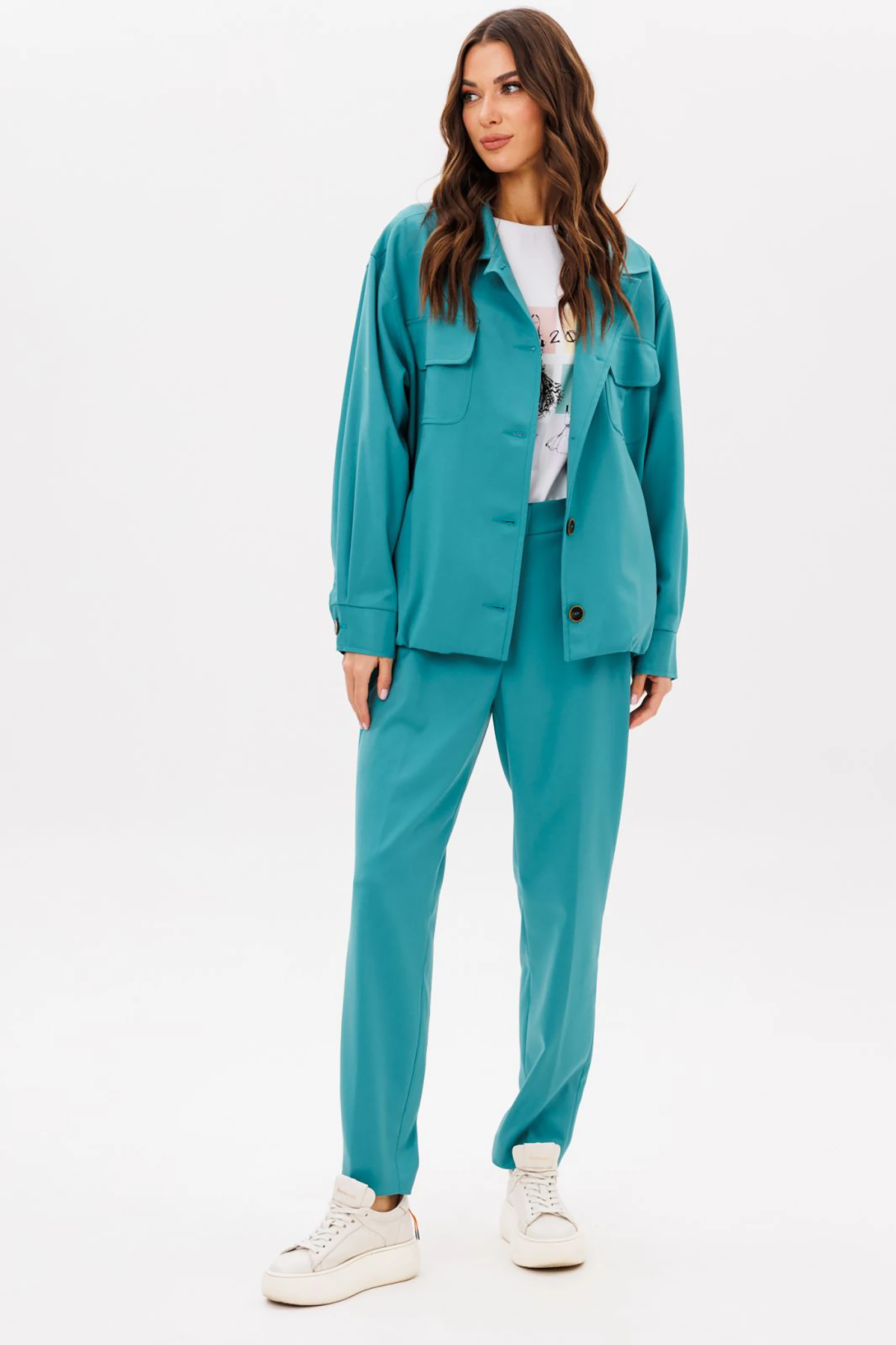 Блейзер - как дух свободы! Хотите уйти от строгих линий и условностей? Тогда это как раз то, что вам нужно. Оригинальна модель и трендовый цвет весеннего сезона позволяет воплотить в жизнь свои модные фантазии и разнообразить гардероб.Свободный силуэт с заниженной линией плеча, рукав, расширенный в области оката, центральная застёжка на петли и пуговицы, стояче-отложной воротник.Полочка с накладными карманами с клапаном в области груди и прорезным карманом с листочкой. Спинка со средним швом. Рукав с локтевым швом, размером, манжетой и мягкой складкой с области локтя. По низу блейзера - эластичная тесьма.Брюки классические, с наклонными боковыми карманами, притачным поясом, эластичным в области спинки, застёжкой на брючный крючок и молнию.Длина блейзера около 70 см, длина рукава с плечом около 74 см.Длина брюк около 100 см.
