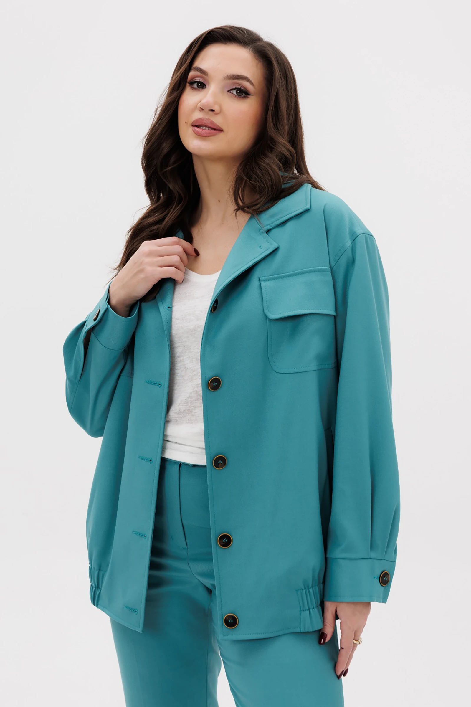 Блейзер - как дух свободы! Хотите уйти от строгих линий и условностей? Тогда это как раз то, что вам нужно. Оригинальна модель и трендовый цвет весеннего сезона позволяет воплотить в жизнь свои модные фантазии и разнообразить гардероб.Свободный силуэт с заниженной линией плеча, рукав, расширенный в области оката, центральная застёжка на петли и пуговицы, стояче-отложной воротник.Полочка с накладными карманами с клапаном в области груди и прорезным карманом с листочкой. Спинка со средним швом. Рукав с локтевым швом, размером, манжетой и мягкой складкой с области локтя. По низу блейзера - эластичная тесьма.Брюки классические, с наклонными боковыми карманами, притачным поясом, эластичным в области спинки, застёжкой на брючный крючок и молнию.Длина блейзера около 70 см, длина рукава с плечом около 74 см.Длина брюк около 100 см.