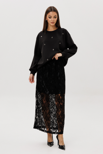 Полуприлегающий удлинённый жилет и прямые брюки отлично подчёркивают фигуру, а слегка расширенные плечи жилета придают дополнительную изюминку образу.