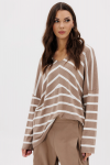 Брюки в расслабленном стиле, на притачном поясе со шлевками, эластичным в области спинки, с отрезным широким компасом по боковому шву и карманом по передним половинкам. Все швы на изделии выполнены контрастной строчкой.