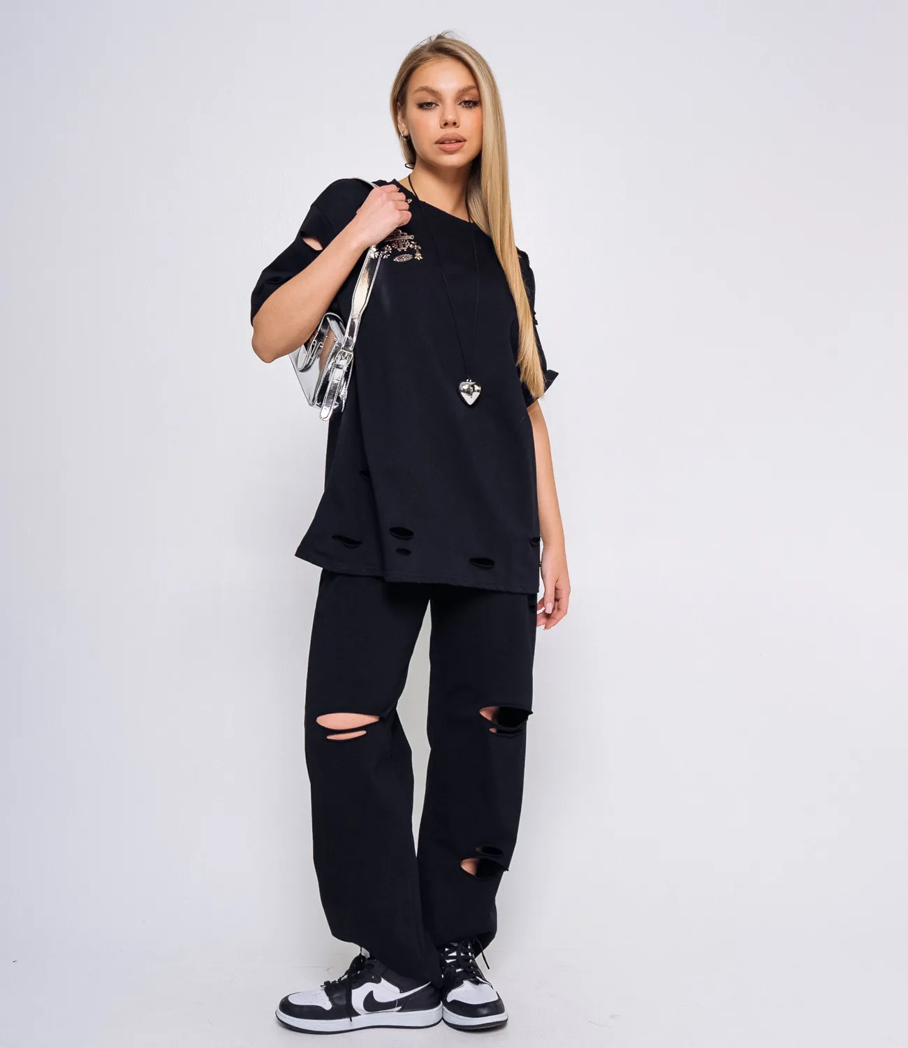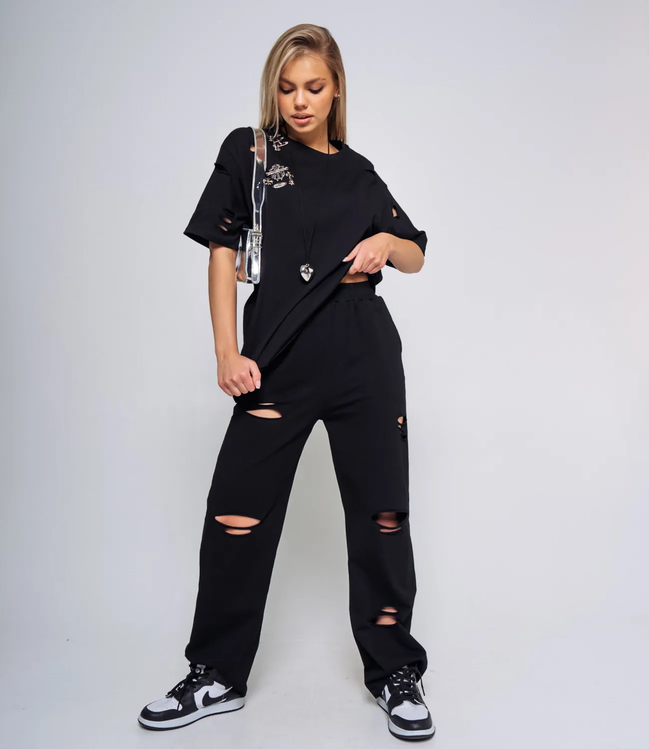 Для изготовления выбрана ткань, состоящая на 90% из хлопка, которая характеризуется отличным качеством. Даже после многих стирок, Спортивный костюм не потеряет изначальной привлекательности. Вы будете его носить с большим удовольствием. Обратите внимание на брюки с порезами, которые добавляют особый шарм и легкость образу. Чтобы вы не сомневались в размере, мы предоставили на сайте таблицу. Воспользовавшись ею, вы сможете самостоятельно обмерить себя и убедиться. Предложенная нами цена является доступной. Подарите себе удовольствие быть элегантной и неповторимой этим летом!