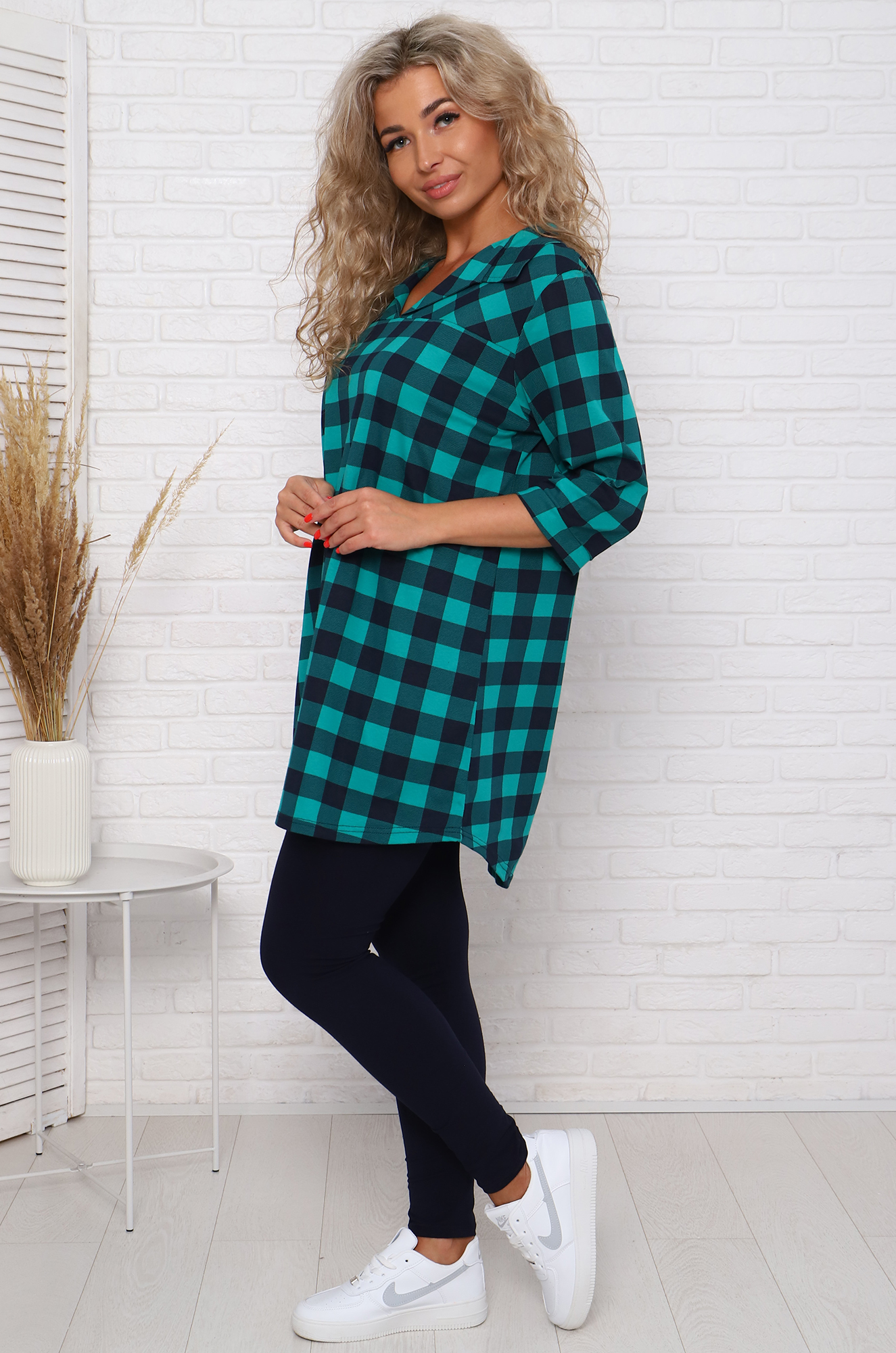 Удобный, стильный и невероятно женственный костюм для повседневного образа. Удлинённая туника-рубашка с отрезной кокеткой и отложным воротником. Модель с удлинённой спинкой, комфортный рукав 3/4. Леггинсы облегающие, пояс на комфортной, широкой резинке.