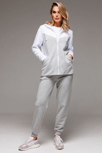 Дизайнерский женский спортивный костюм состоит из худи на застёжке-молнии и джоггеров с манжетами. Отлично подойдет для прогулок, активного времяпровождения, а также корпоративных мероприятий и тимбилдинга.