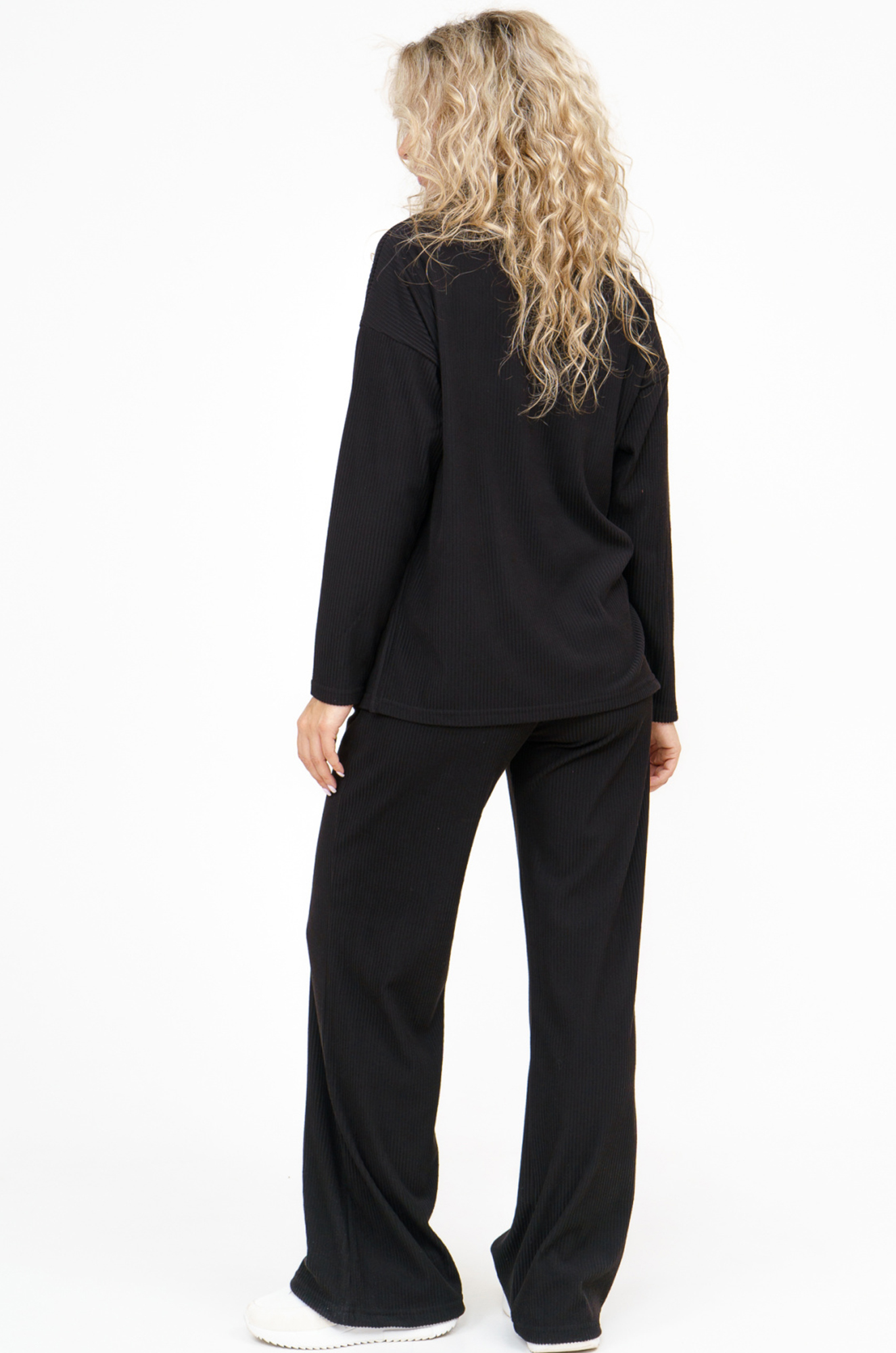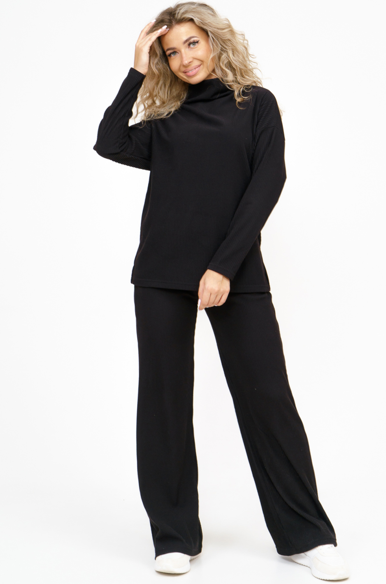 Женский костюм с брюками из ткани "лапша" отлично подойдет как для домашнего отдыха, так и для повседневной носки. Струящийся свитшот с воротником стойка, спущенной линией плеча и разрезами по бокам выгодно подчеркнет фигуру и придаст женственности. Широкие брюки с двумя боковыми карманами придадут стильность образу. Подчеркните свою индивидуальность с этим модным костюмом.