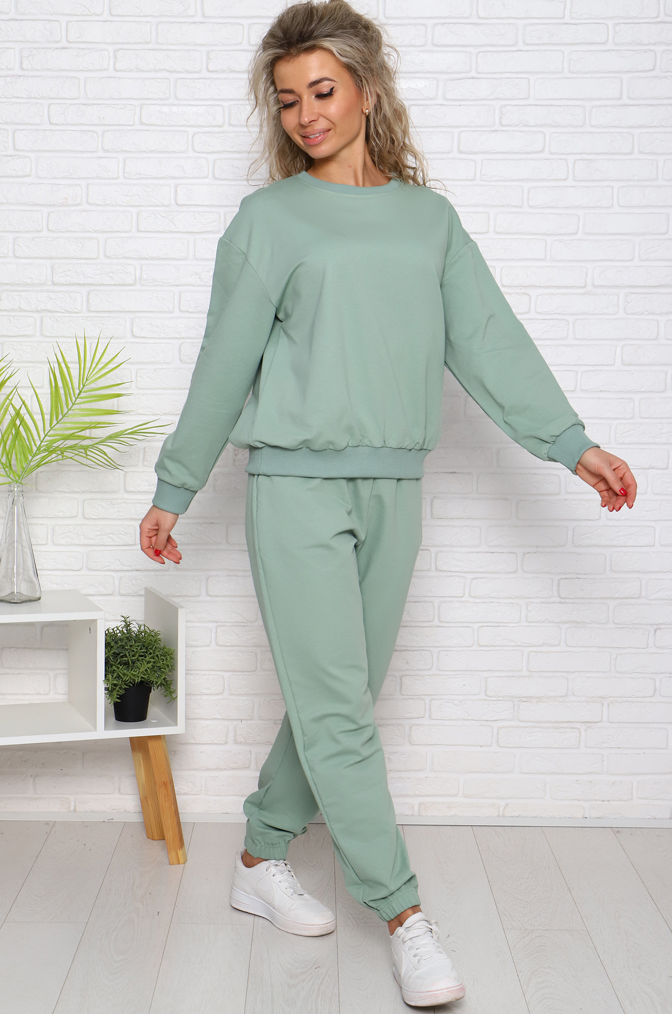 Самая популярная, удобная и любимая одежда каждой девушки - одежда спортивного стиля! Костюм свободного кроя в самых модных оттенках смотрится безупречно и стильно. Свитшот снизу на манжете из эластичной рибаны, плечевой шов спущенный. Брюки снизу на резинке, удобные боковые карманы, пояс на широкой резинке, прострочен на спец. машине.