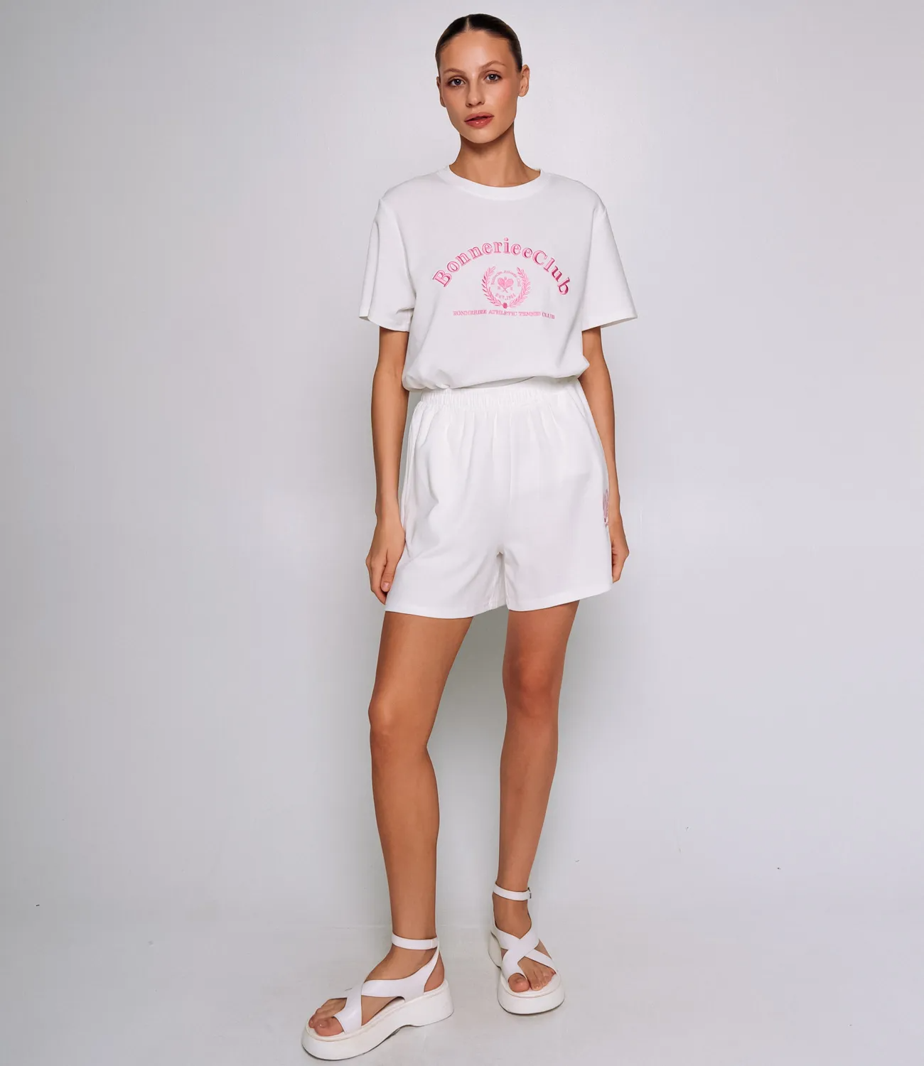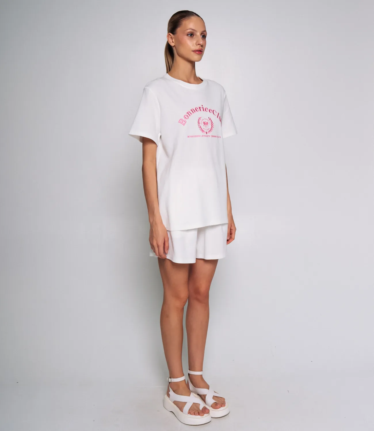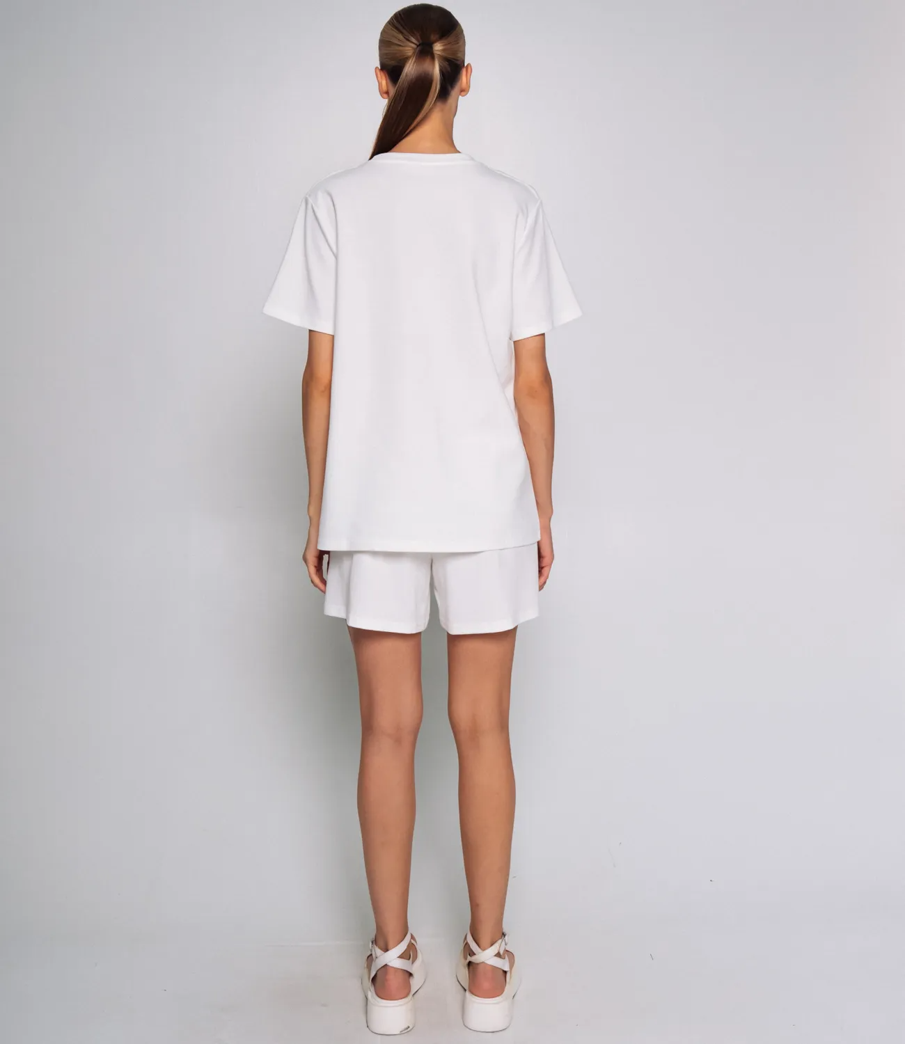 Костюм — это идеальное сочетание удобства и стиля, которое поможет каждой женщине выглядеть непревзойденно в любой ситуации. Этот комплект состоит из двух предметов — футболки и шорт, которые гармонично дополняют друг друга и создают завершенный образ. Футболка свободного кроя с короткими рукавами и круглым вырезом выполнена из высококачественного материала, содержащего 65% хлопка, 30% полиэстера и 5% эластана. На передней части расположен крупный принт с текстом и графическим элементом, что придаёт модели оригинальности и современного звучания. Такой дизайн привлекает внимание и позволяет создавать яркие образы, подчеркивая индивидуальность каждой носительницы. Шорты средней длины с эластичным поясом обеспечивают комфортную посадку и свободу движений. Эта модель отлично подходит как для повседневной носки, так и для активного отдыха. Комбинация удобного кроя и стильного оформления делает костюм универсальным элементом гардероба, который легко сочетать с различной обувью и аксессуарами. Обратите внимание на качество ткани, которое гарантирует долговечность и сохранение формы даже после множества стирок. Мы также предоставили на странице таблицу размеров, чтобы ваши покупательницы могли легко подобрать подходящий размер и быть уверенными в своем выборе. Предложенная нами цена является доступной и приемлемой для оптовых покупателей, что позволит вам легко расширить ассортимент вашего магазина. Не упустите возможность предложить своим клиентам этот стильный и комфортный костюм, который станет их любимым выбором для летних дней и активных мероприятий! Подарите своим клиентам возможность быть стильными и уверенными в себе!