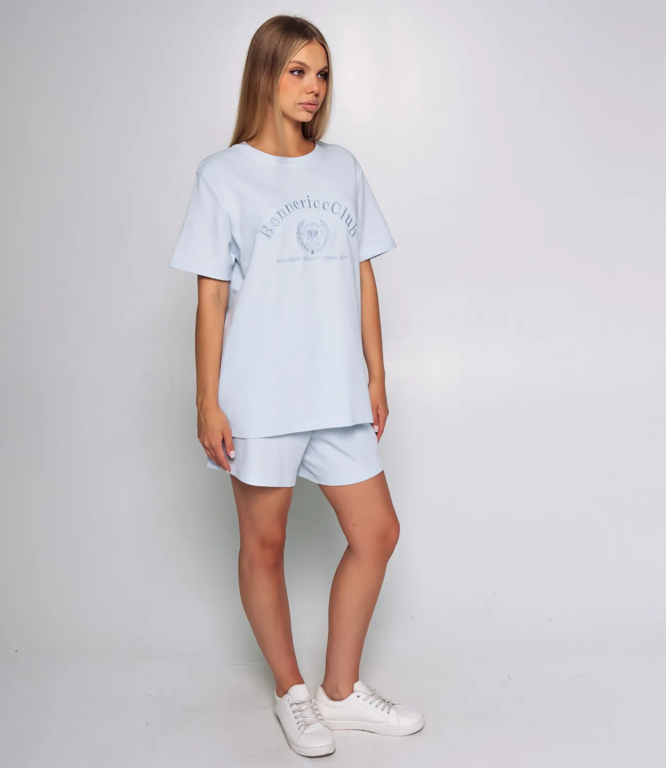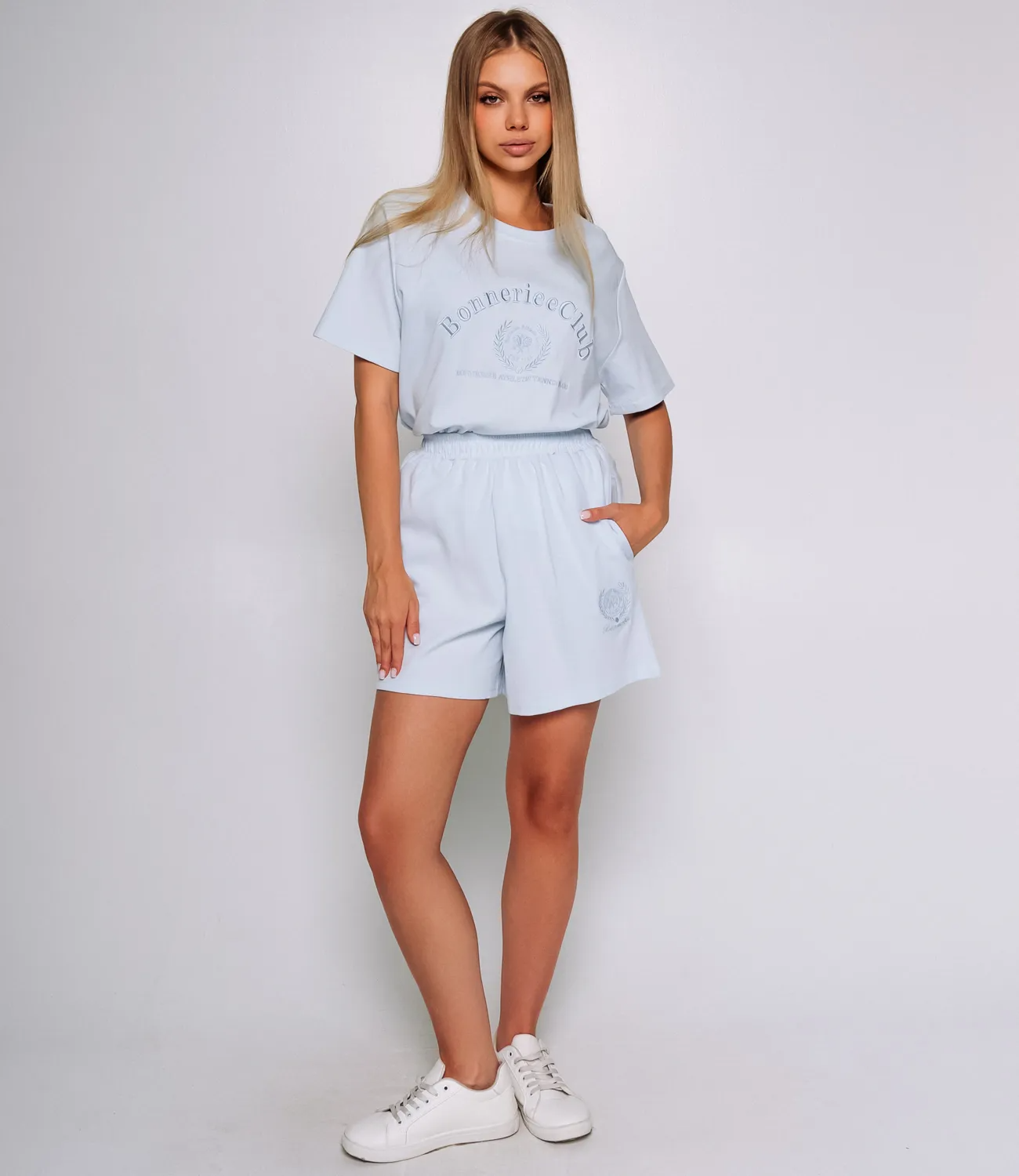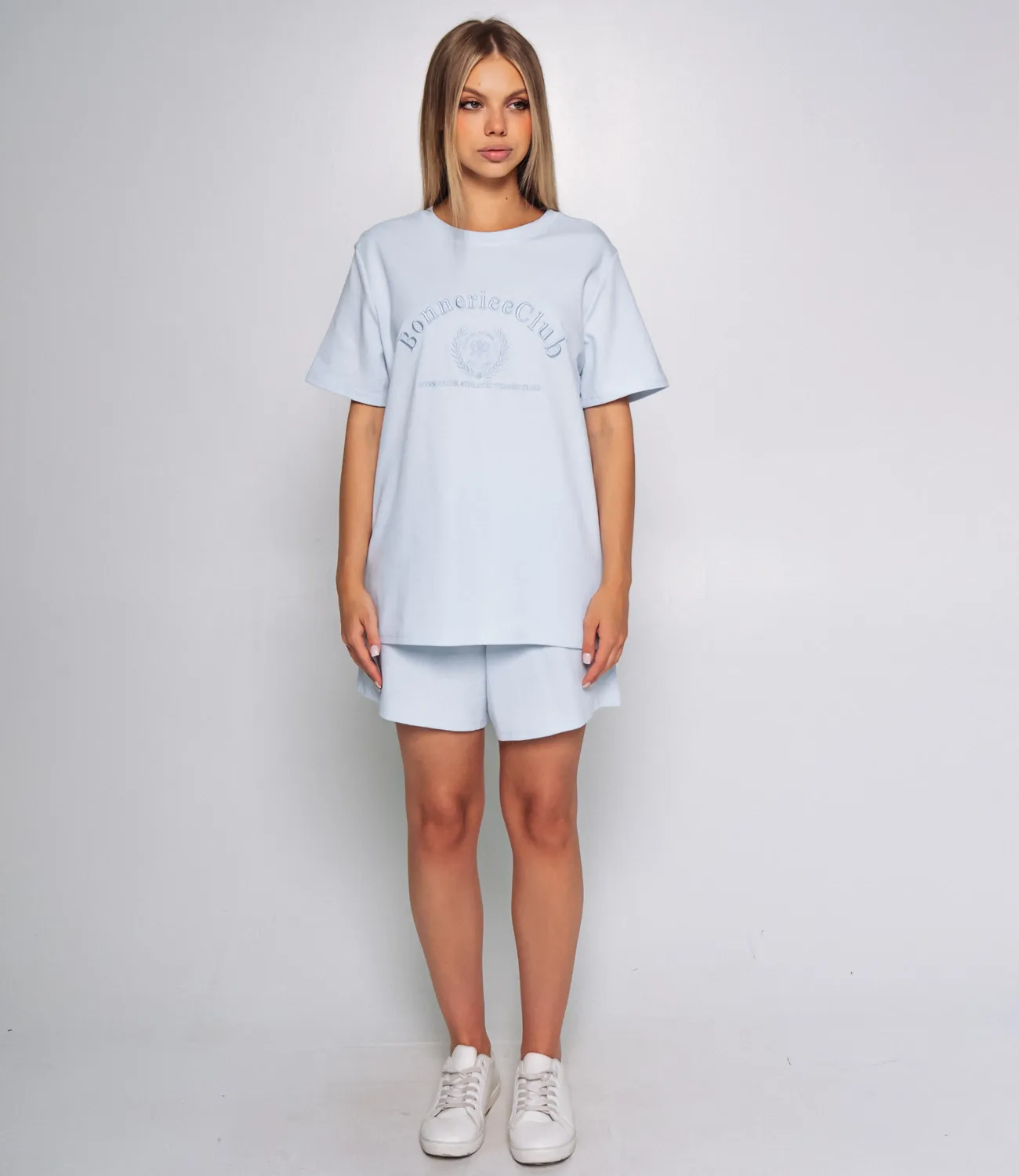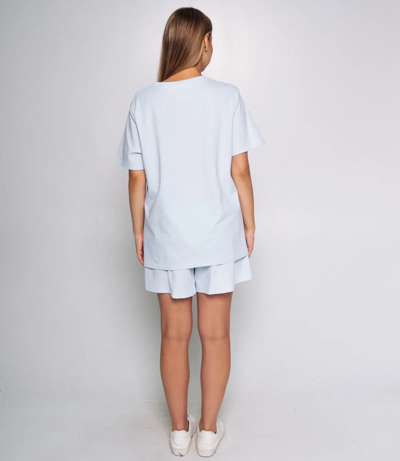 Костюм — это идеальное сочетание удобства и стиля, которое поможет каждой женщине выглядеть непревзойденно в любой ситуации. Этот комплект состоит из двух предметов — футболки и шорт, которые гармонично дополняют друг друга и создают завершенный образ. Футболка свободного кроя с короткими рукавами и круглым вырезом выполнена из высококачественного материала, содержащего 65% хлопка, 30% полиэстера и 5% эластана. На передней части расположен крупный принт с текстом и графическим элементом, что придаёт модели оригинальности и современного звучания. Такой дизайн привлекает внимание и позволяет создавать яркие образы, подчеркивая индивидуальность каждой носительницы. Шорты средней длины с эластичным поясом обеспечивают комфортную посадку и свободу движений. Эта модель отлично подходит как для повседневной носки, так и для активного отдыха. Комбинация удобного кроя и стильного оформления делает костюм универсальным элементом гардероба, который легко сочетать с различной обувью и аксессуарами. Обратите внимание на качество ткани, которое гарантирует долговечность и сохранение формы даже после множества стирок. Мы также предоставили на странице таблицу размеров, чтобы ваши покупательницы могли легко подобрать подходящий размер и быть уверенными в своем выборе. Предложенная нами цена является доступной и приемлемой для оптовых покупателей, что позволит вам легко расширить ассортимент вашего магазина. Не упустите возможность предложить своим клиентам этот стильный и комфортный костюм, который станет их любимым выбором для летних дней и активных мероприятий! Подарите своим клиентам возможность быть стильными и уверенными в себе! Рост модели 168 см., 89-63-90.