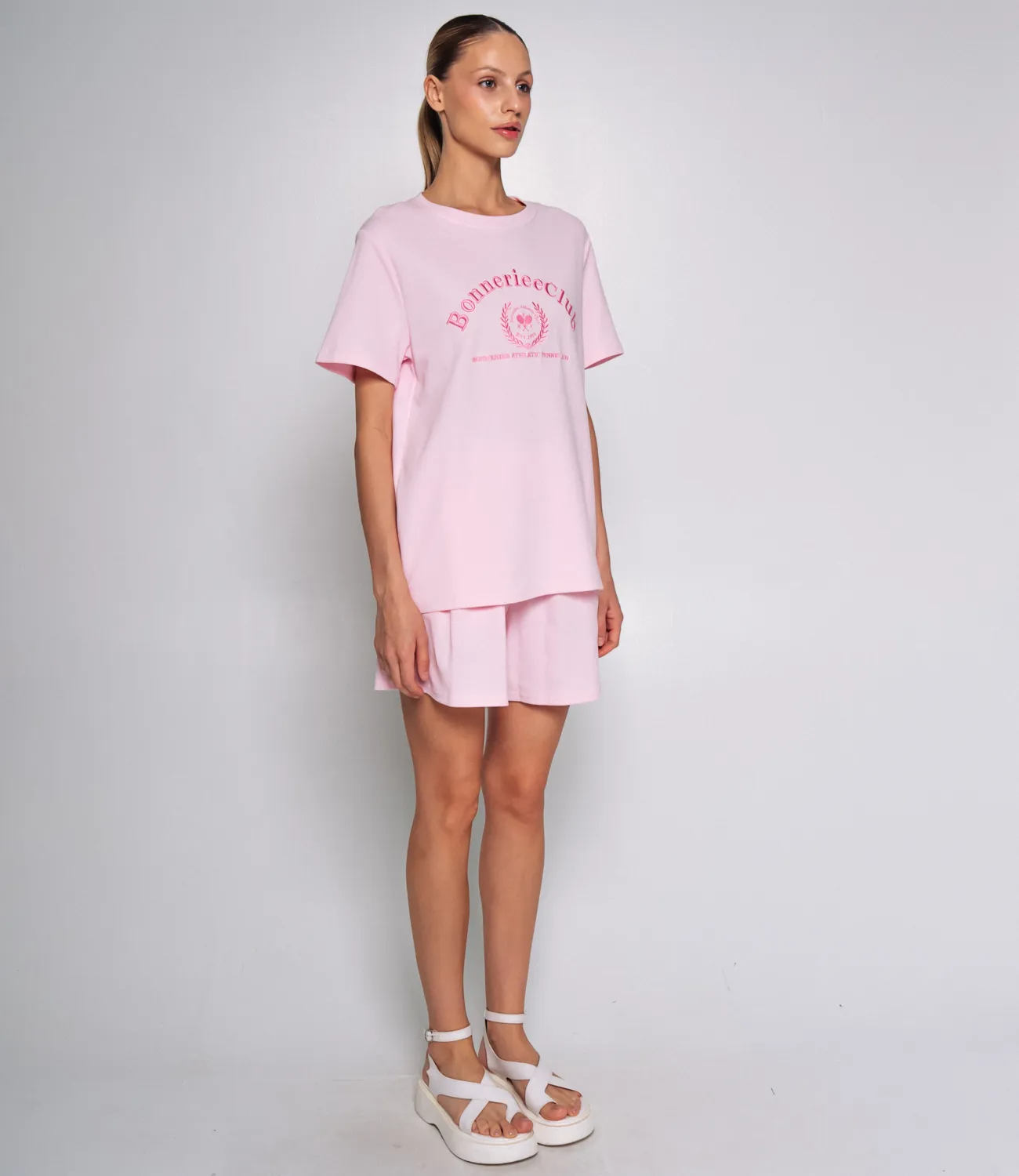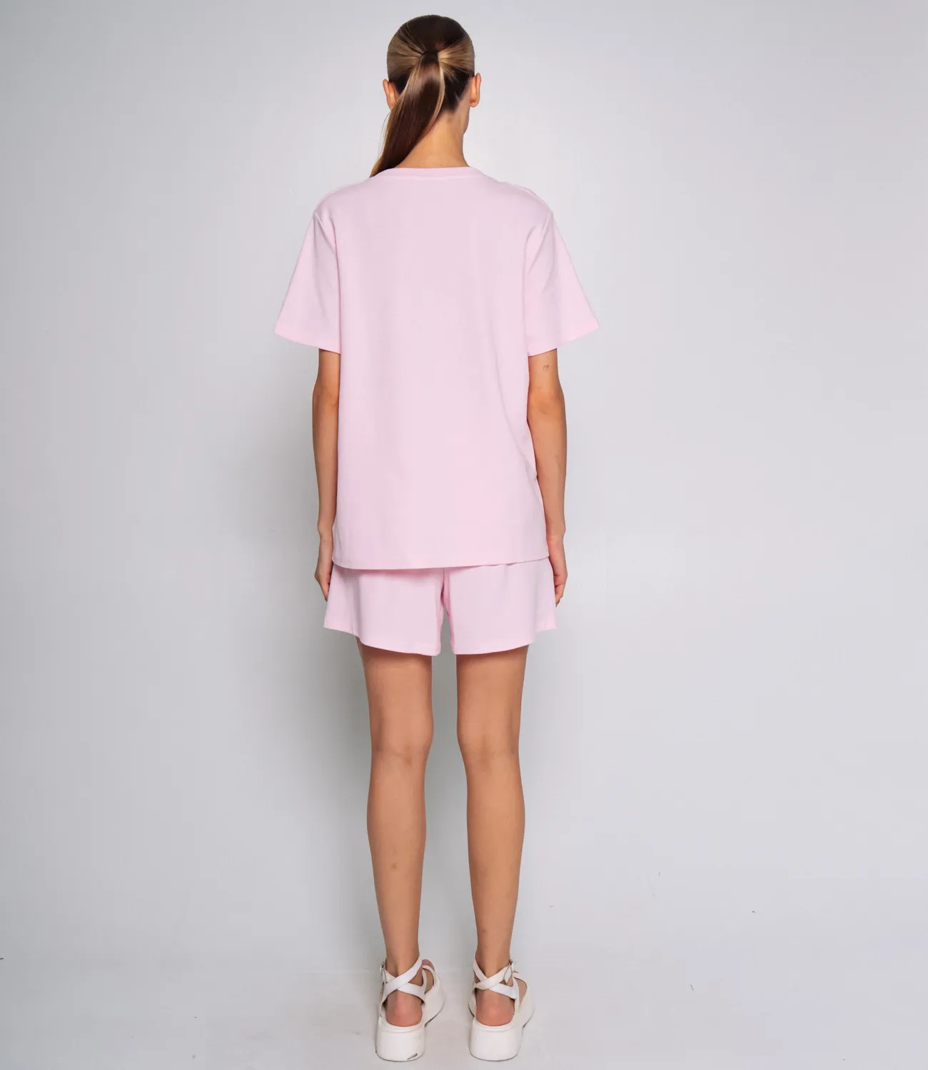 Костюм — это идеальное сочетание удобства и стиля, которое поможет каждой женщине выглядеть непревзойденно в любой ситуации. Этот комплект состоит из двух предметов — футболки и шорт, которые гармонично дополняют друг друга и создают завершенный образ. Футболка свободного кроя с короткими рукавами и круглым вырезом выполнена из высококачественного материала, содержащего 65% хлопка, 30% полиэстера и 5% эластана. На передней части расположен крупный принт с текстом и графическим элементом, что придаёт модели оригинальности и современного звучания. Такой дизайн привлекает внимание и позволяет создавать яркие образы, подчеркивая индивидуальность каждой носительницы. Шорты средней длины с эластичным поясом обеспечивают комфортную посадку и свободу движений. Эта модель отлично подходит как для повседневной носки, так и для активного отдыха. Комбинация удобного кроя и стильного оформления делает костюм универсальным элементом гардероба, который легко сочетать с различной обувью и аксессуарами. Обратите внимание на качество ткани, которое гарантирует долговечность и сохранение формы даже после множества стирок. Мы также предоставили на странице таблицу размеров, чтобы ваши покупательницы могли легко подобрать подходящий размер и быть уверенными в своем выборе. Предложенная нами цена является доступной и приемлемой для оптовых покупателей, что позволит вам легко расширить ассортимент вашего магазина. Не упустите возможность предложить своим клиентам этот стильный и комфортный костюм, который станет их любимым выбором для летних дней и активных мероприятий! Подарите своим клиентам возможность быть стильными и уверенными в себе!