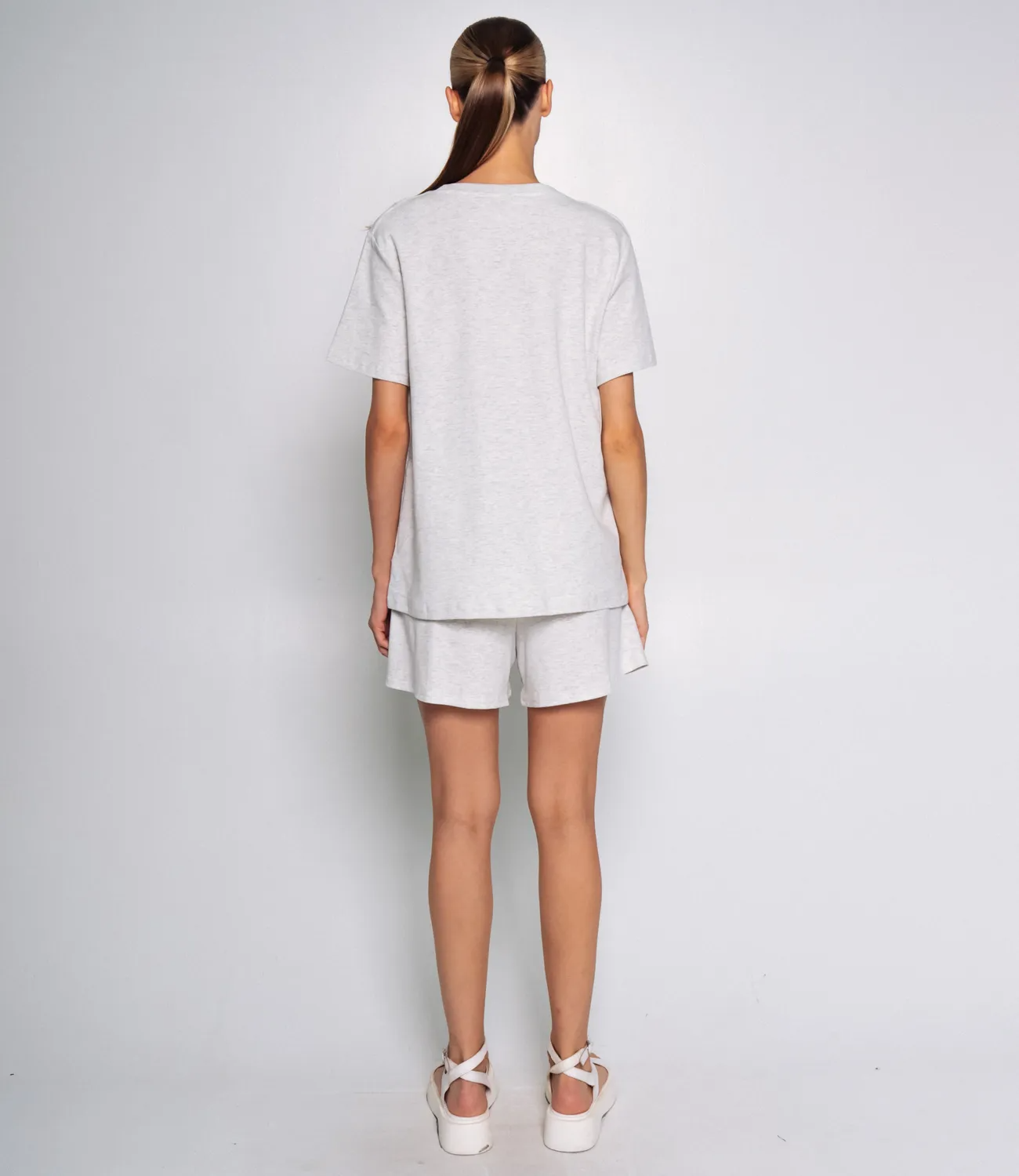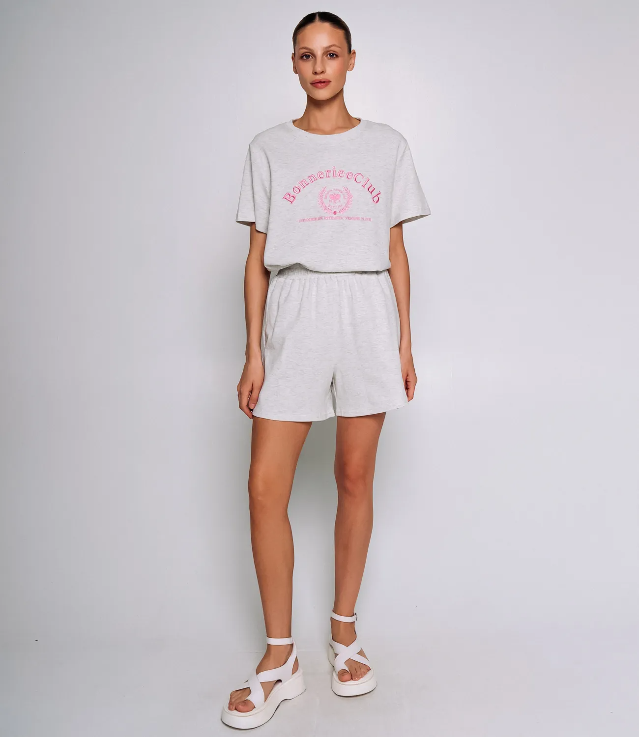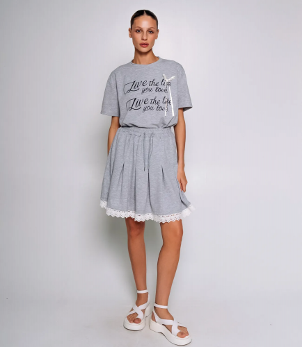 Костюм — это идеальное сочетание удобства и стиля, которое поможет каждой женщине выглядеть непревзойденно в любой ситуации. Этот комплект состоит из двух предметов — футболки и шорт, которые гармонично дополняют друг друга и создают завершенный образ. Футболка свободного кроя с короткими рукавами и круглым вырезом выполнена из высококачественного материала, содержащего 65% хлопка, 30% полиэстера и 5% эластана. На передней части расположен крупный принт с текстом и графическим элементом, что придаёт модели оригинальности и современного звучания. Такой дизайн привлекает внимание и позволяет создавать яркие образы, подчеркивая индивидуальность каждой носительницы. Шорты средней длины с эластичным поясом обеспечивают комфортную посадку и свободу движений. Эта модель отлично подходит как для повседневной носки, так и для активного отдыха. Комбинация удобного кроя и стильного оформления делает костюм универсальным элементом гардероба, который легко сочетать с различной обувью и аксессуарами. Обратите внимание на качество ткани, которое гарантирует долговечность и сохранение формы даже после множества стирок. Мы также предоставили на странице таблицу размеров, чтобы ваши покупательницы могли легко подобрать подходящий размер и быть уверенными в своем выборе. Предложенная нами цена является доступной и приемлемой для оптовых покупателей, что позволит вам легко расширить ассортимент вашего магазина. Не упустите возможность предложить своим клиентам этот стильный и комфортный костюм, который станет их любимым выбором для летних дней и активных мероприятий! Подарите своим клиентам возможность быть стильными и уверенными в себе!