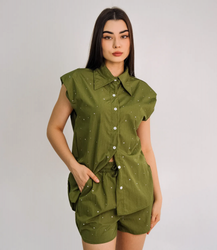 Костюм – это часть гардероба, которая выделяет уникальность каждой женщины. Данный комплект для летнего сезона состоит из шорт и укороченной рубашки. Его выбирают покупательницы, которые ценят сочетание качества и стиля. Силуэт подчеркивает изящность фигуры. Производитель умеет находить уникальные и модные решения. Для изготовления использована ткань 65% хлопок, 35% полиэстер, которая характеризуется отличным качеством. Даже после многих стирок костюм не потеряет первоначальной привлекательности. Вы будете его носить с удовольствием. Обращайте внимание на цвет. Он является насыщенным и полностью соответствует фотографии на сайте. Чтобы вы были уверены в размере, мы предоставили на сайте таблицу. Воспользовавшись ею, вы сможете сделать мерки и убедиться. Установленная нами цена является приемлемой. Не откажите себе в удовольствии быть неповторимой! Параметры модели: рост 170, 86-68-95.