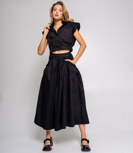 Легкий летний костюм, который состоит из шортов и рубашки.
