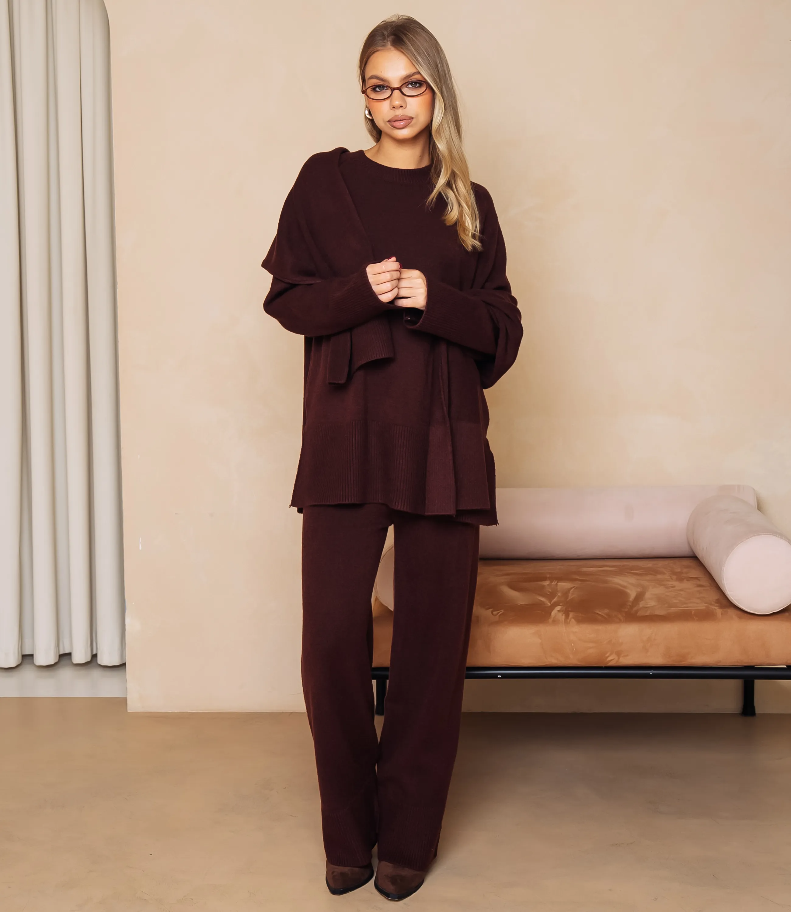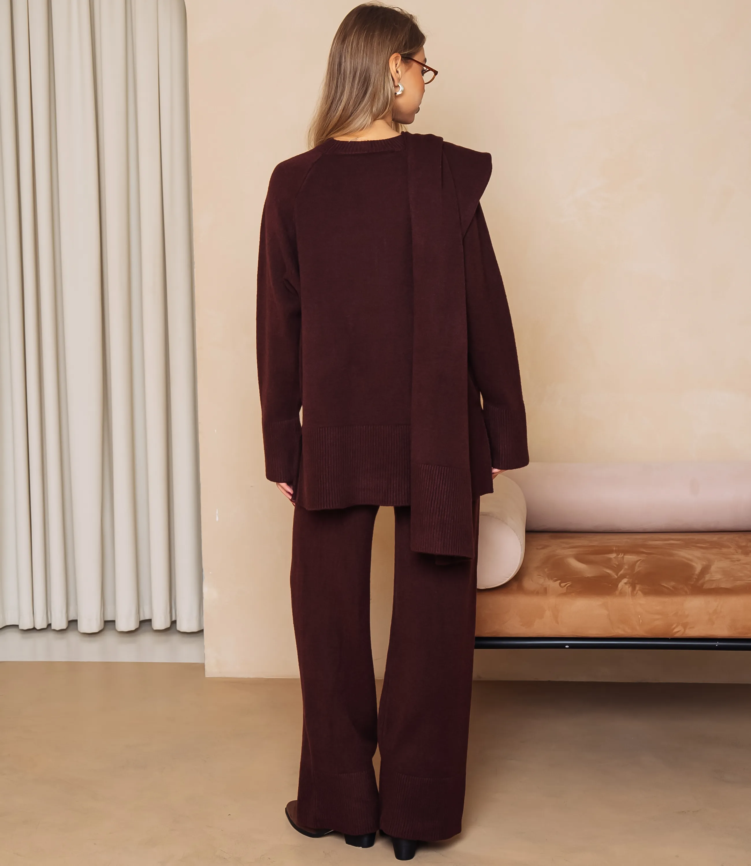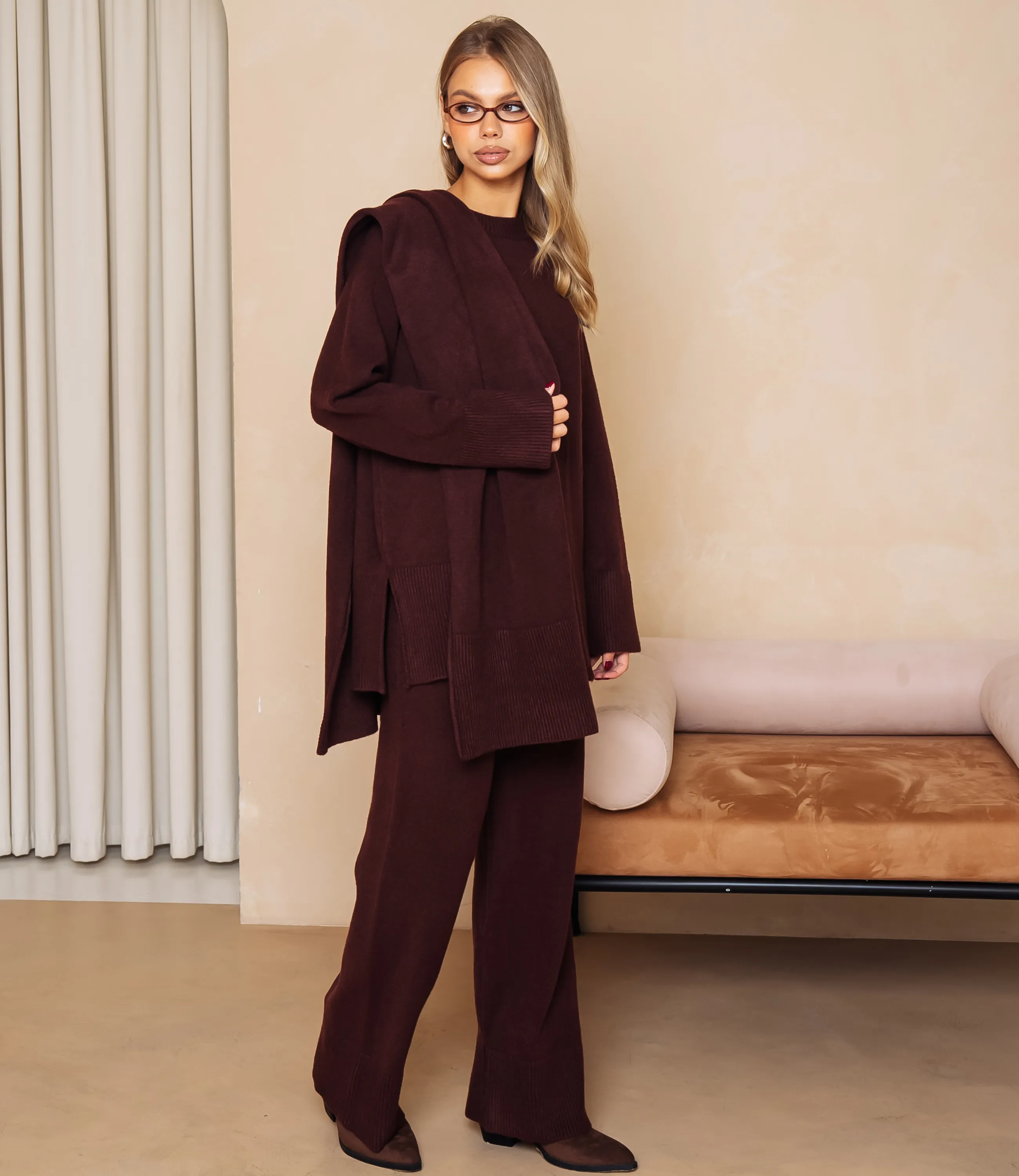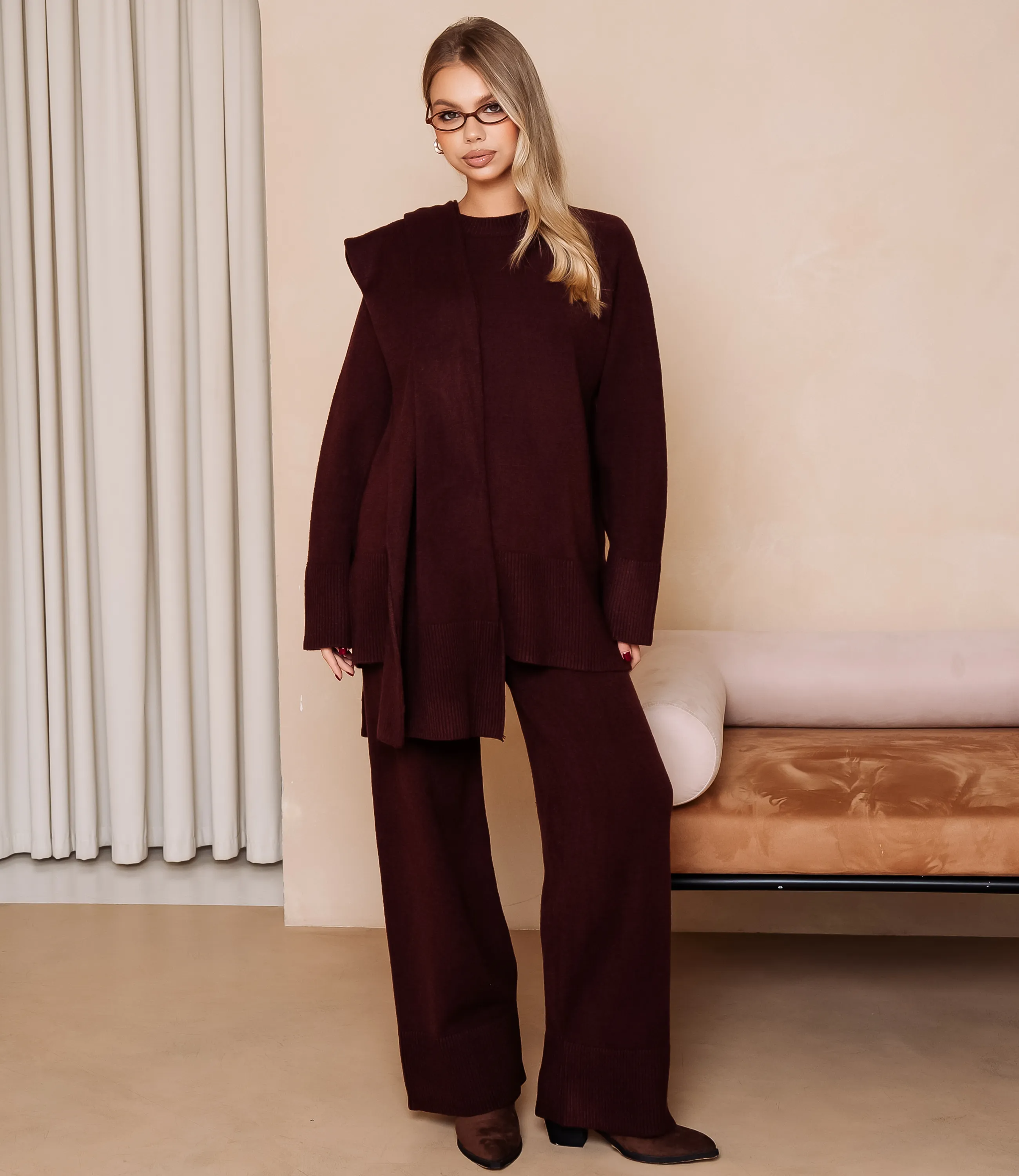 Костюм – это одежда, которая подчеркивает стиль и комфорт каждой женщины. Свободный удлинённый трикотажный комплект в расслабленном силуэте: джемпер прямого кроя с круглым вырезом горловины, широкими манжетами и широким ребристым кантом по низу, длина опускается ниже бёдер с небольшими боковыми разрезами; к джемперу добавлен длинный шарф-палантин из того же вязания, наброшенный через плечо. Брюки имеют среднюю или слегка заниженную посадку, прямой свободный крой по бедрам и голеням, низ оформлен широким ребристым манжетом, почти закрывающим обувь. Для изготовления использованы ткани 52% акрил, 39% полиэстер и 9% шерсть, который характеризуются отличным качеством и дышащими свойствами. Даже после множества стирок изделие не утратит первоначальной красоты. Вы будете носить его с радостью. Обратите внимание на цвет. Он полностью соответствуют фотографии на сайте. Чтобы вы были уверены в размере, мы представили на странице таблицу. Воспользовавшись ею, вы сможете сами обмерить себя и удостовериться. Установленная нами цена является приемлемой. Не откажите себе в удовольствии быть стильной и комфортной! Рост 168, 89-63-90.
