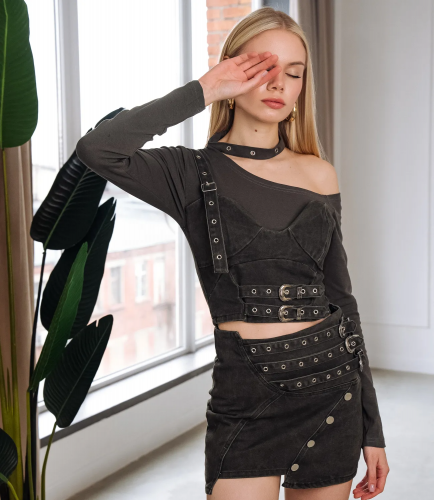 Джинсовый костюм – это модный и стильный вариант для создания современного образа. Параметры модели: рост 173, 84-58-89.