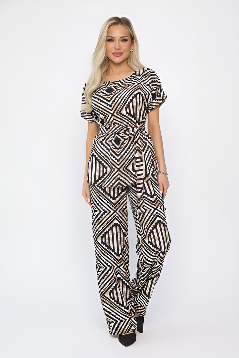 Костюм из лёгкой ткани не сковывает движения, очень удобный и дарит ощущение лёгкости в жаркую погоду. Идеально подходит для создания офисных образов и повседневных летних прогулок. В комплекте пояс из основной ткани. Костюм без подкладки. Брюки на резинке, есть карманы в боковых швах.