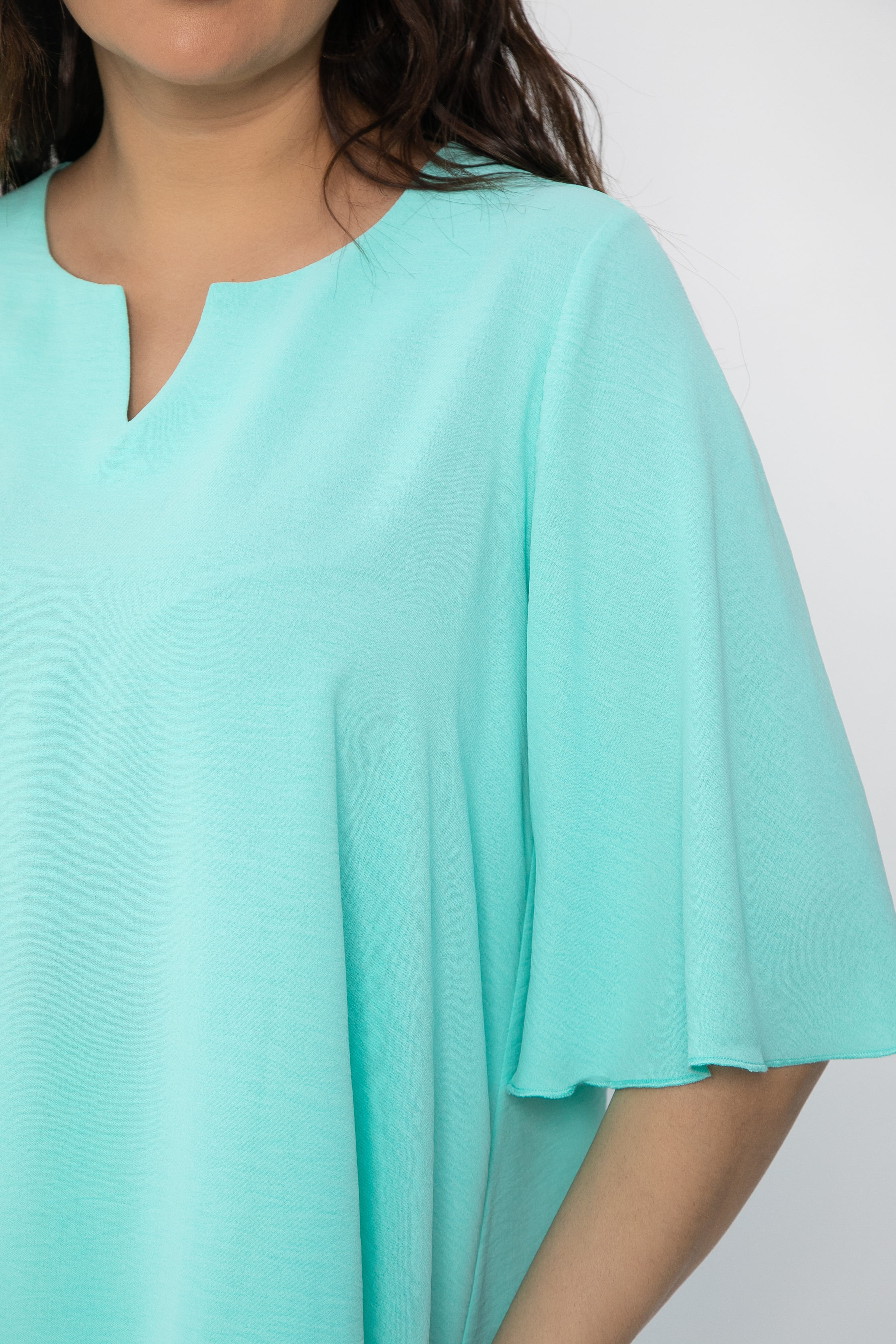 Легкий, приятный к телу брючный костюм в мятном оттенке, преимущественно из хлопка, покорит вас с первого прикосновения. Блуза свободного кроя с воздушными фалдами имеет рукав средней длины и V-образный вырез. Свободные брюки в стиле палаццо придают костюму легкость и особый шик. Брюки имеют пояс на комфортной резинке, что позволяет чувствовать себя свободно и не сомневаться при выборе размера. Низ брюк деликатно собран резинкой, которую по желанию можно растянуть/стянуть по размеру своей ножки или вовсе убрать, и тогда у вас получатся прямые к низу брюки. Свободный силуэт костюма подходит абсолютно для любой фигуры. Костюм актуален для любого мероприятия, романтических встреч и летних прогулок.