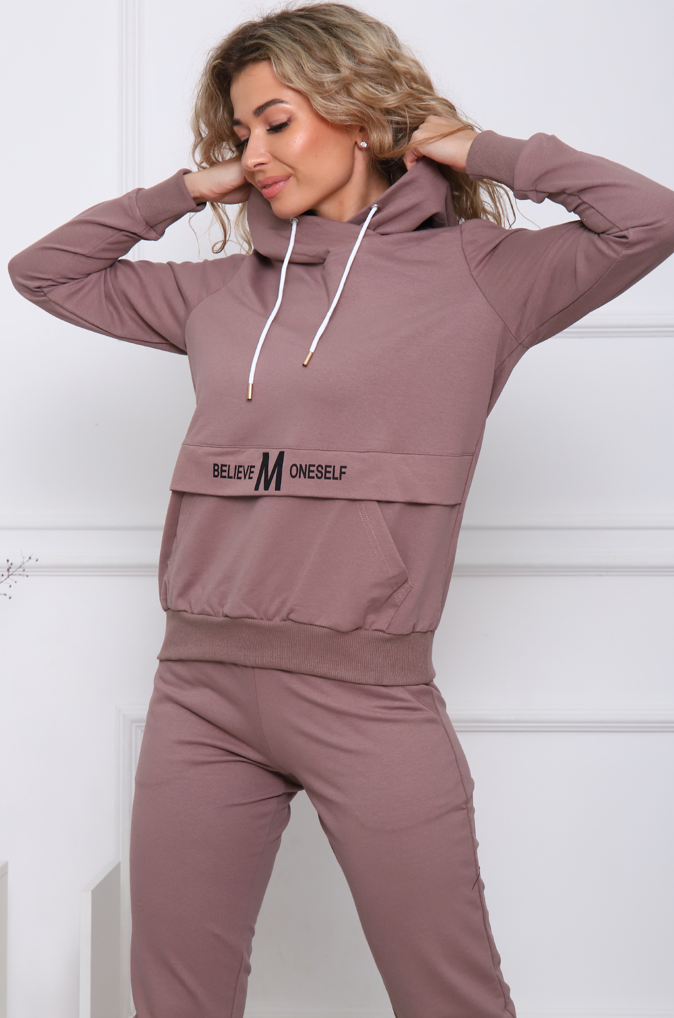 Стильный молодёжный костюм для активного отдыха или прогулок. Толстовка-худи с двойным капюшоном, карман-кенгуру.