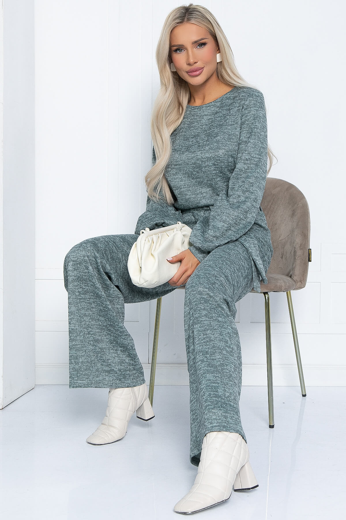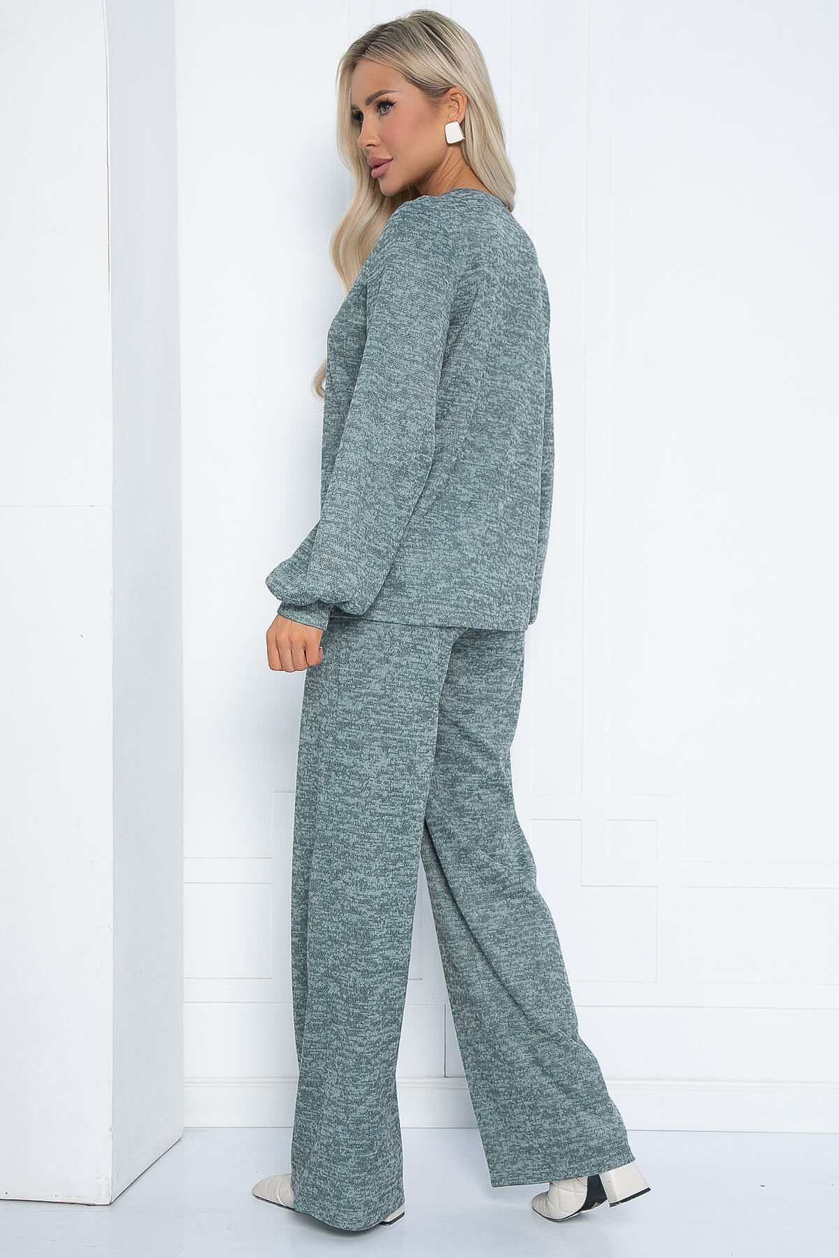 Повседневный костюм из трикотажного полотна «Ангора» свободного кроя прекрасно впишется в ваш гардероб. Джемпер с округлой горловиной и пышными рукавами на манжете — это воплощение уюта и стиля. Брюки свободного кроя с притачным поясом на резине со шлёвками. Костюм дополнен поясом, который можно использовать как с брюками, так и с джемпером. В таком костюме можно смело отправиться на прогулку или на встречу с друзьями. Целый день вам будет уютно и комфортно.