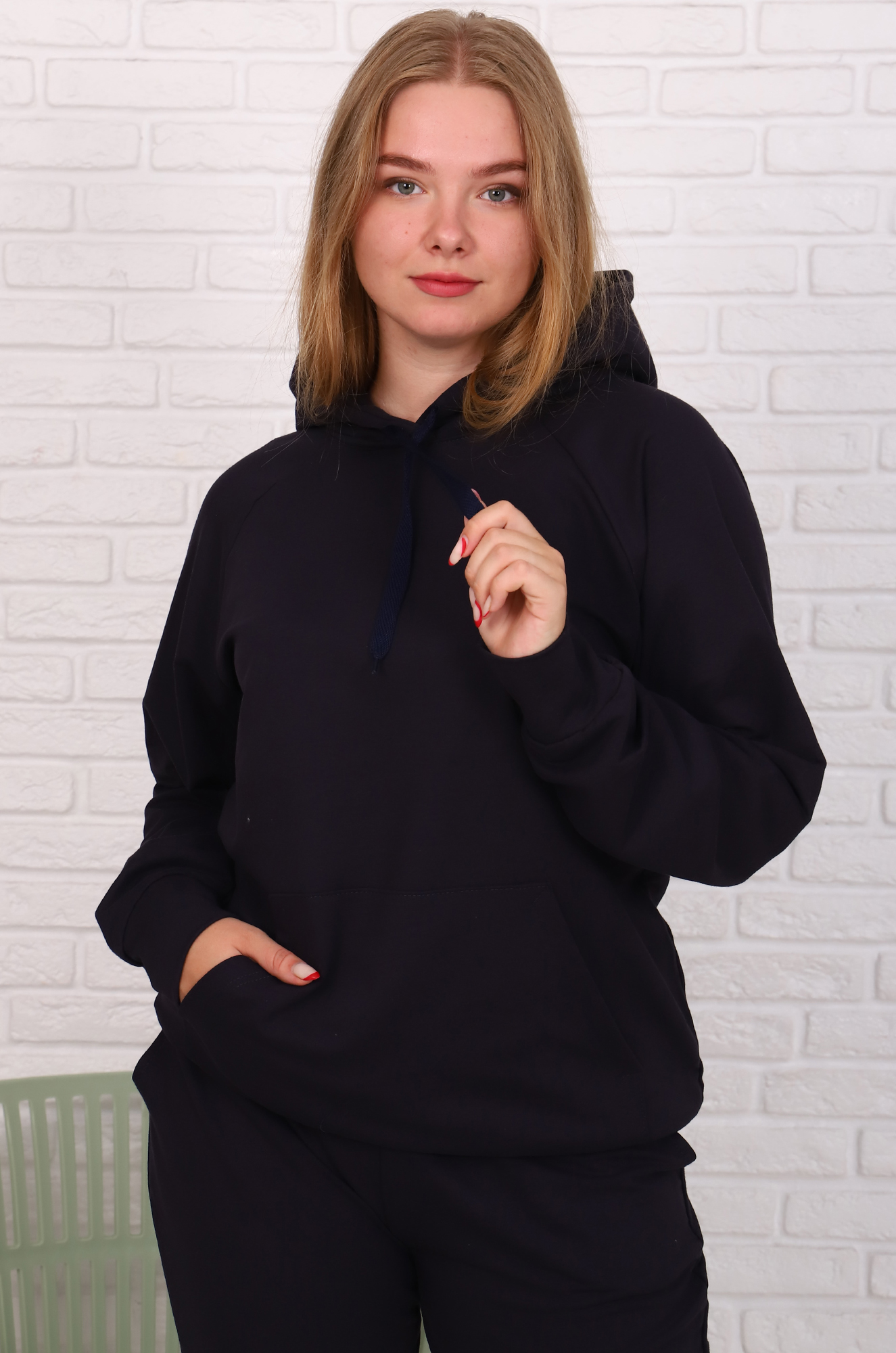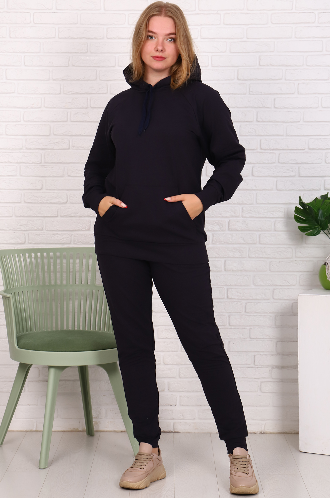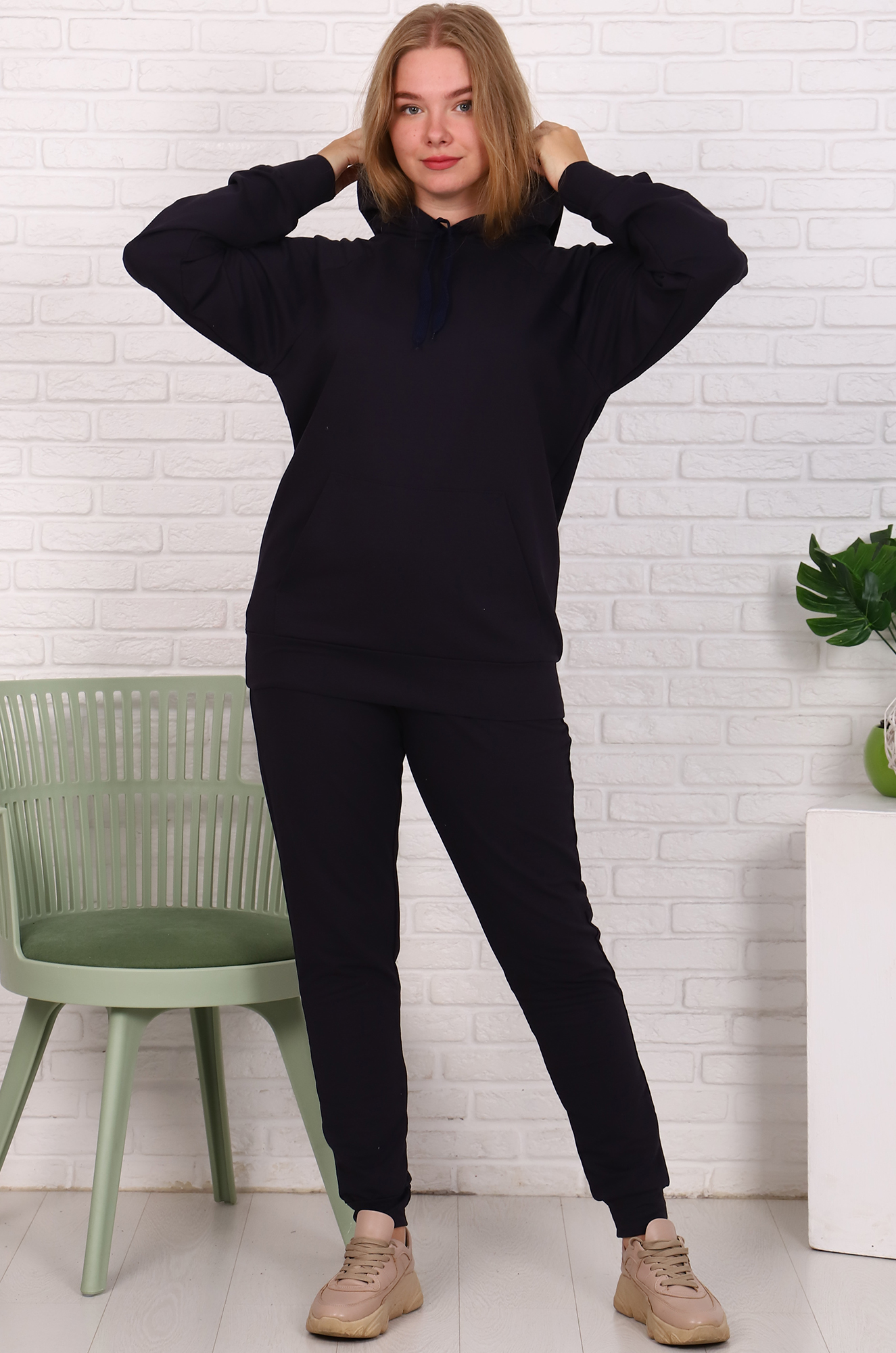 Толстовка-худи снизу на эластичном манжете, удобный карман "кенгуру", двойной капюшон с подкладкой из основной ткани - может заменить шапку. Брюки на эластичном манжете, с удобными боковыми карманами, пояс с широкой резинкой.