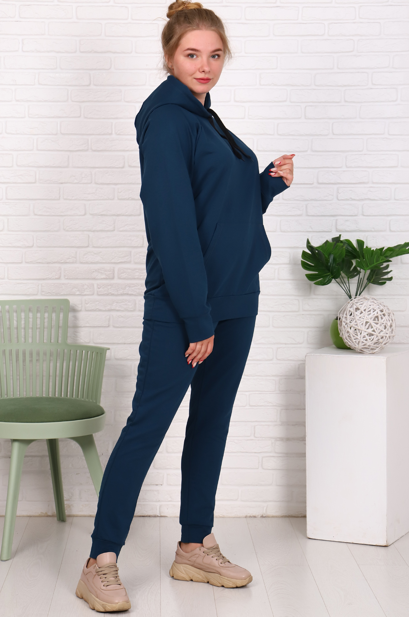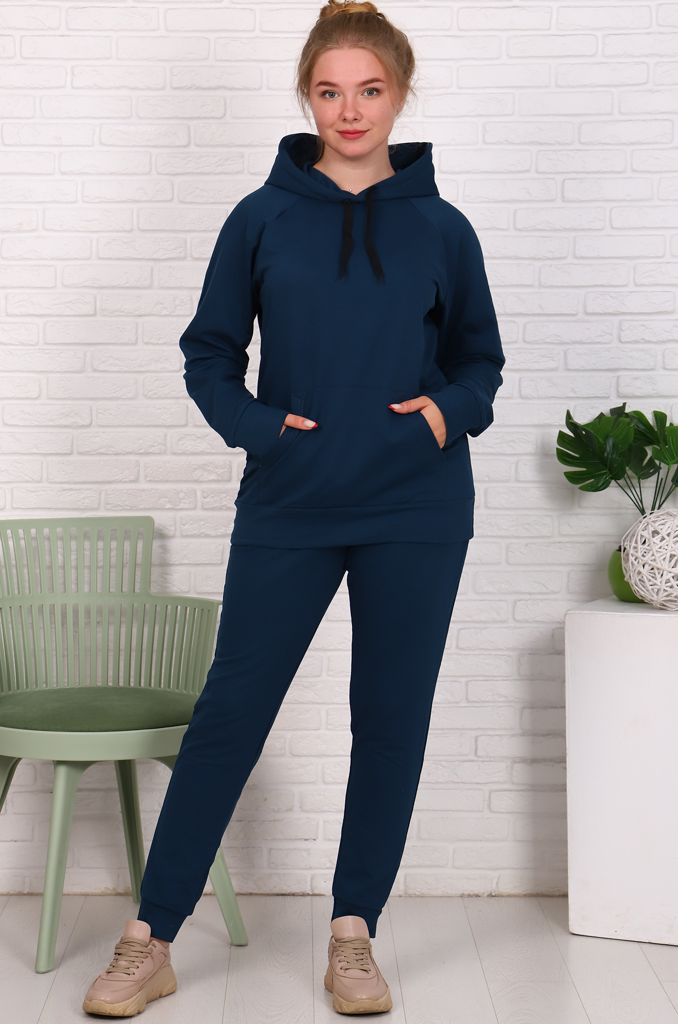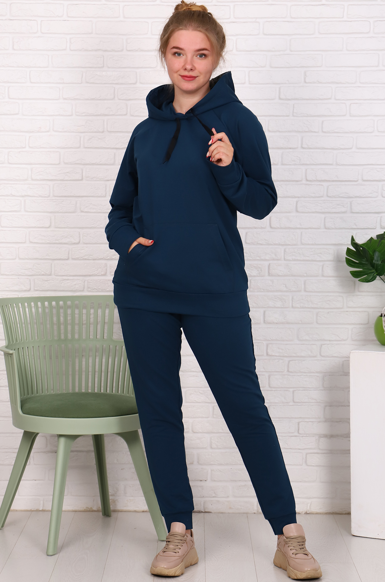 Толстовка-худи снизу на эластичном манжете, удобный карман "кенгуру", двойной капюшон с подкладкой из основной ткани - может заменить шапку. Брюки на эластичном манжете, с удобными боковыми карманами, пояс с широкой резинкой.