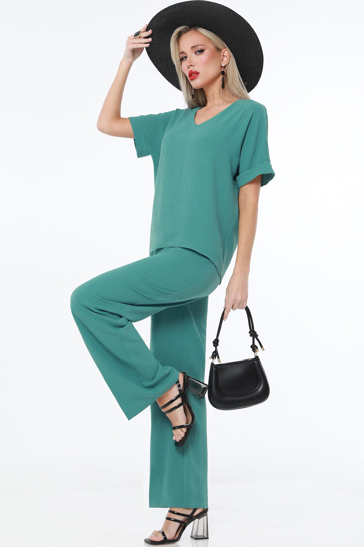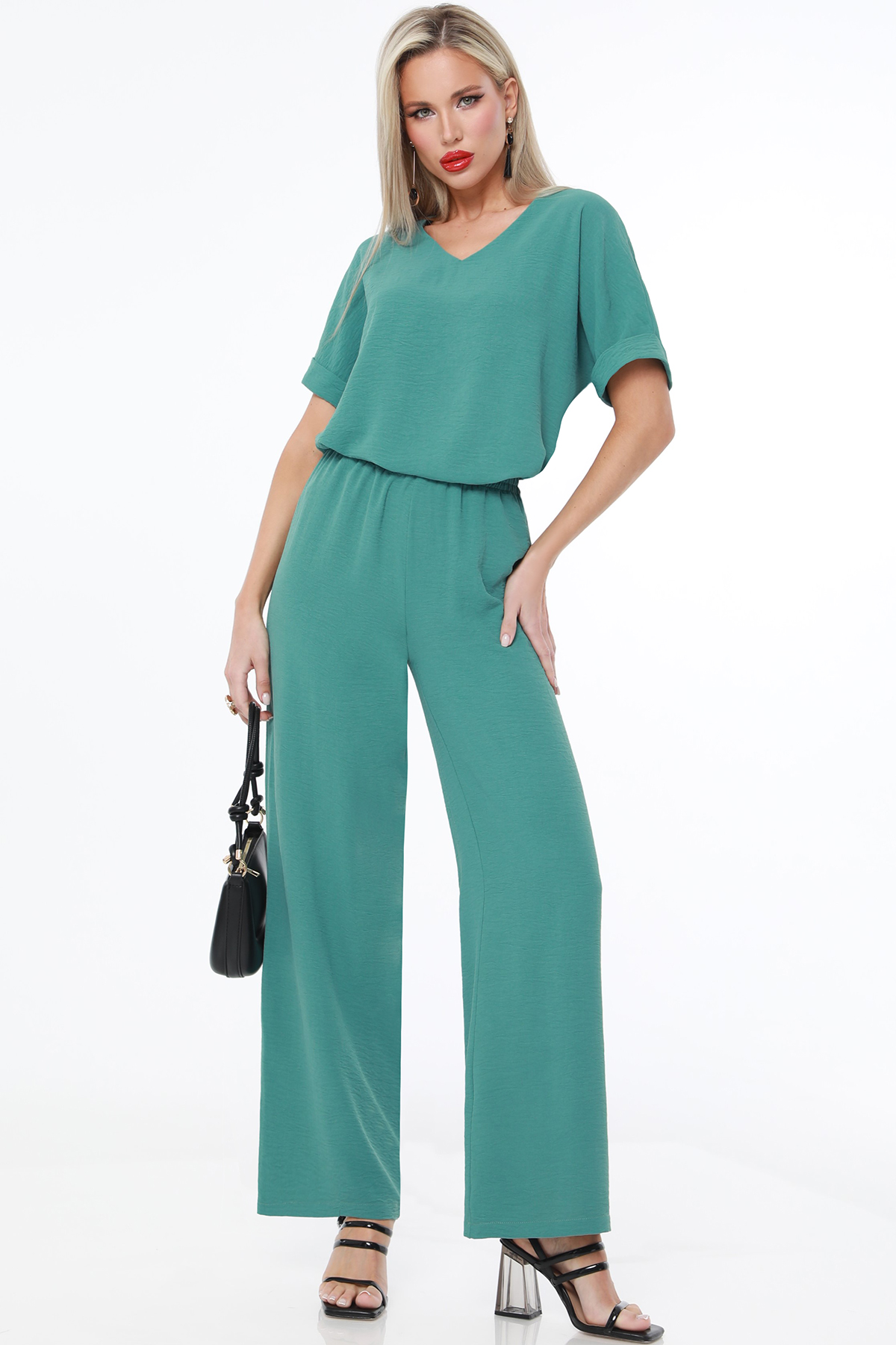 Костюм брючный насыщенного цвета создан для тех, кто ценит комфорт и стиль в летний сезон. Он состоит из двух элементов: брюк и блузки, идеально сочетающихся между собой. Брюки выполнены из плательно-костюмной ткани, которая отличается легкостью и прочностью. Этот материал обеспечивает хорошую вентиляцию, что особенно важно в жаркие летние дни. Брюки на резинке обеспечивают комфортную посадку и удобство в носке. Благодаря эластичному поясу они легко адаптируются к фигуре, не стягивая и не ограничивая движения. Блузка свободного кроя со спущенным плечом придает костюму легкость и непринужденность. Она выполнена из той же плательно-костюмной ткани, что и брюки, обеспечивая единый стиль и гармоничный вид. Свободный крой блузки позволяет коже дышать и создает ощущение прохлады даже в самый жаркий день. Спущенные плечи добавляют образу модный акцент и подчеркивают его расслабленность и стиль. V-образный вырез горловины придает блузке элегантность и женственность. Он визуально вытягивает шею и подчеркивает линию декольте. Этот вырез прекрасно сочетается с различными аксессуарами, такими как цепочки или кулоны, добавляя завершенность образу. Короткие рукава блузки обеспечивают дополнительный комфорт и свободу движений. Для ухода за костюмом рекомендуется бережная стирка при температуре не выше 30 градусов. Это позволит сохранить насыщенность цвета и форму изделий. Используйте мягкие моющие средства и деликатный режим стирки, чтобы избежать повреждений ткани и продлить срок службы костюма.