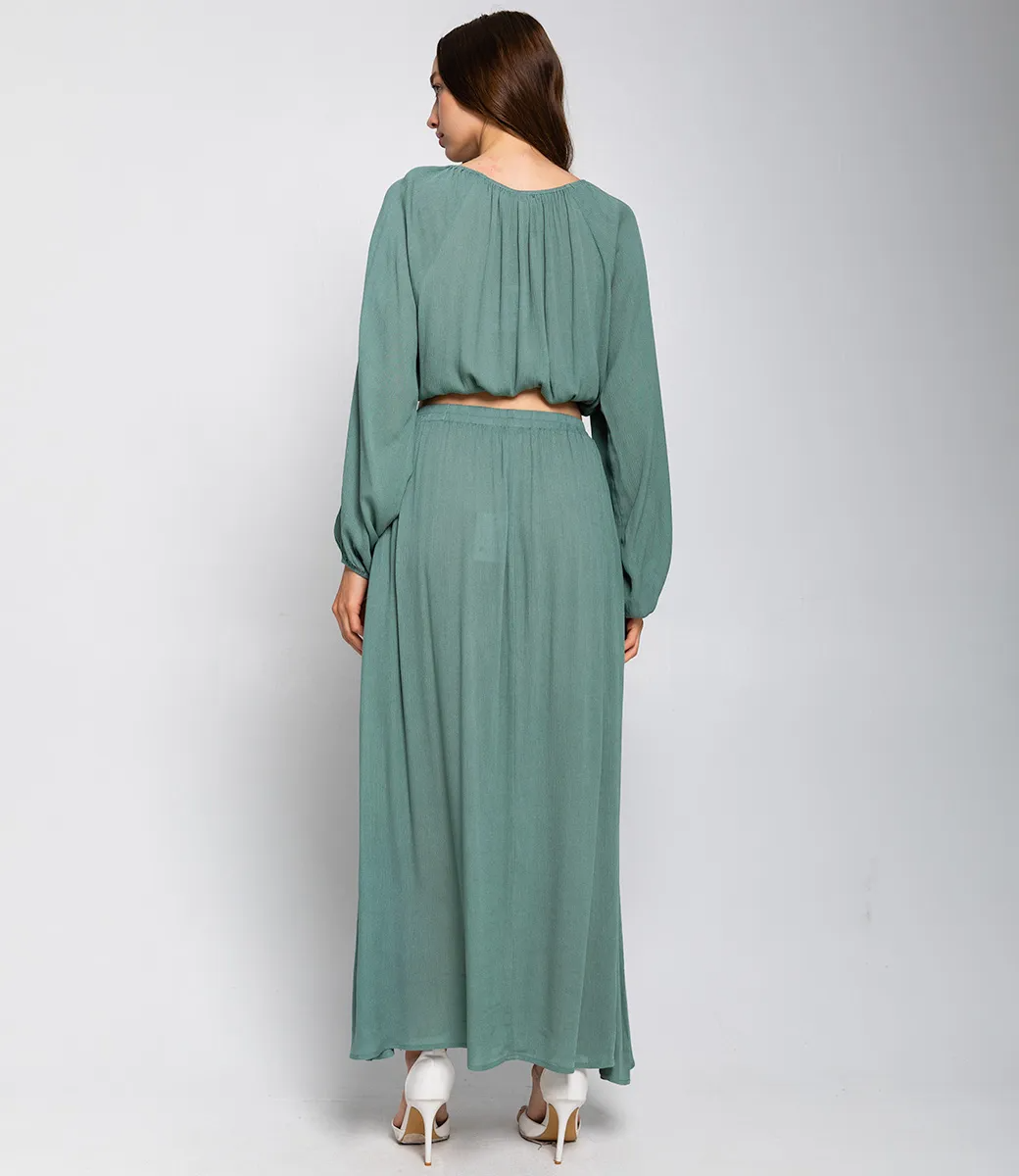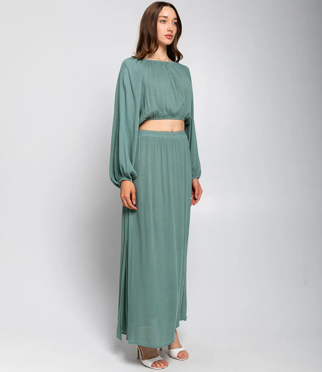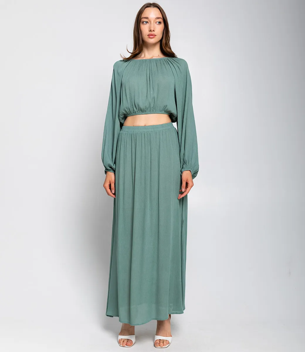 Костюм – это эффектная часть гардероба, подчеркивающая женственность и уникальность каждой представительницы прекрасного пола. Костюм состоит из двух элементов: укороченного топа и длинной юбки макси. Топ свободного кроя с длинными рукавами, которые слегка расширяются к манжетам. Топ длиной чуть выше талии, за счёт чего создаёт акцент на талии. Юбка макси длины, свободного кроя, с эластичной талией и мягкими складками, которые придают плавность и лёгкость силуэту. Для пошива этого костюма использованы ткань с составом 100% вискоза что гарантирует отличное качество и долговечность. Костюм легко выдерживает множество стирок, сохраняя свою первоначальную привлекательность и комфорт. Обратите внимание на цвет и фактуру ткани – они полностью соответствуют фото на сайте и прекрасно дополнят любой летний образ. Для уверенности в размере мы представили на странице таблицу, чтобы вы могли самостоятельно обмерить себя и убедиться в идеальной посадке костюма. Предложенная нами цена является приемлемой, что делает этот комплект отличным выбором для оптовых покупателей. Не упустите возможность предложить вашим клиенткам этот стильный костюм, который станет их любимым выбором для летних дней! Позвольте вашим покупательницам наслаждаться комфортом и элегантностью с этим великолепным комплектом! Рост 168, 85-63-92. Вы можете заказать онлайн презентацию на интересующие Вас модели. Наши менеджеры свяжутся с Вами и проведут индивидуальную видеотрансляцию, помогут составить заказ и ответят на Ваши вопросы.