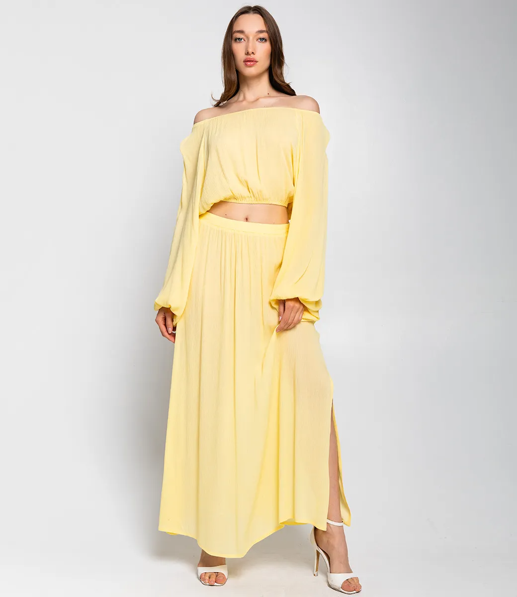 Костюм – это эффектная часть гардероба, подчеркивающая женственность и уникальность каждой представительницы прекрасного пола. Костюм состоит из двух элементов: укороченного топа и длинной юбки макси. Топ свободного кроя с длинными рукавами, которые слегка расширяются к манжетам. Топ длиной чуть выше талии, за счёт чего создаёт акцент на талии. Юбка макси длины, свободного кроя, с эластичной талией и мягкими складками, которые придают плавность и лёгкость силуэту. Для пошива этого костюма использованы ткань с составом 100% вискоза что гарантирует отличное качество и долговечность. Костюм легко выдерживает множество стирок, сохраняя свою первоначальную привлекательность и комфорт. Обратите внимание на цвет и фактуру ткани – они полностью соответствуют фото на сайте и прекрасно дополнят любой летний образ. Для уверенности в размере мы представили на странице таблицу, чтобы вы могли самостоятельно обмерить себя и убедиться в идеальной посадке костюма. Предложенная нами цена является приемлемой, что делает этот комплект отличным выбором для оптовых покупателей. Не упустите возможность предложить вашим клиенткам этот стильный костюм, который станет их любимым выбором для летних дней! Позвольте вашим покупательницам наслаждаться комфортом и элегантностью с этим великолепным комплектом! Рост 168, 85-63-92. Вы можете заказать онлайн презентацию на интересующие Вас модели. Наши менеджеры свяжутся с Вами и проведут индивидуальную видеотрансляцию, помогут составить заказ и ответят на Ваши вопросы.