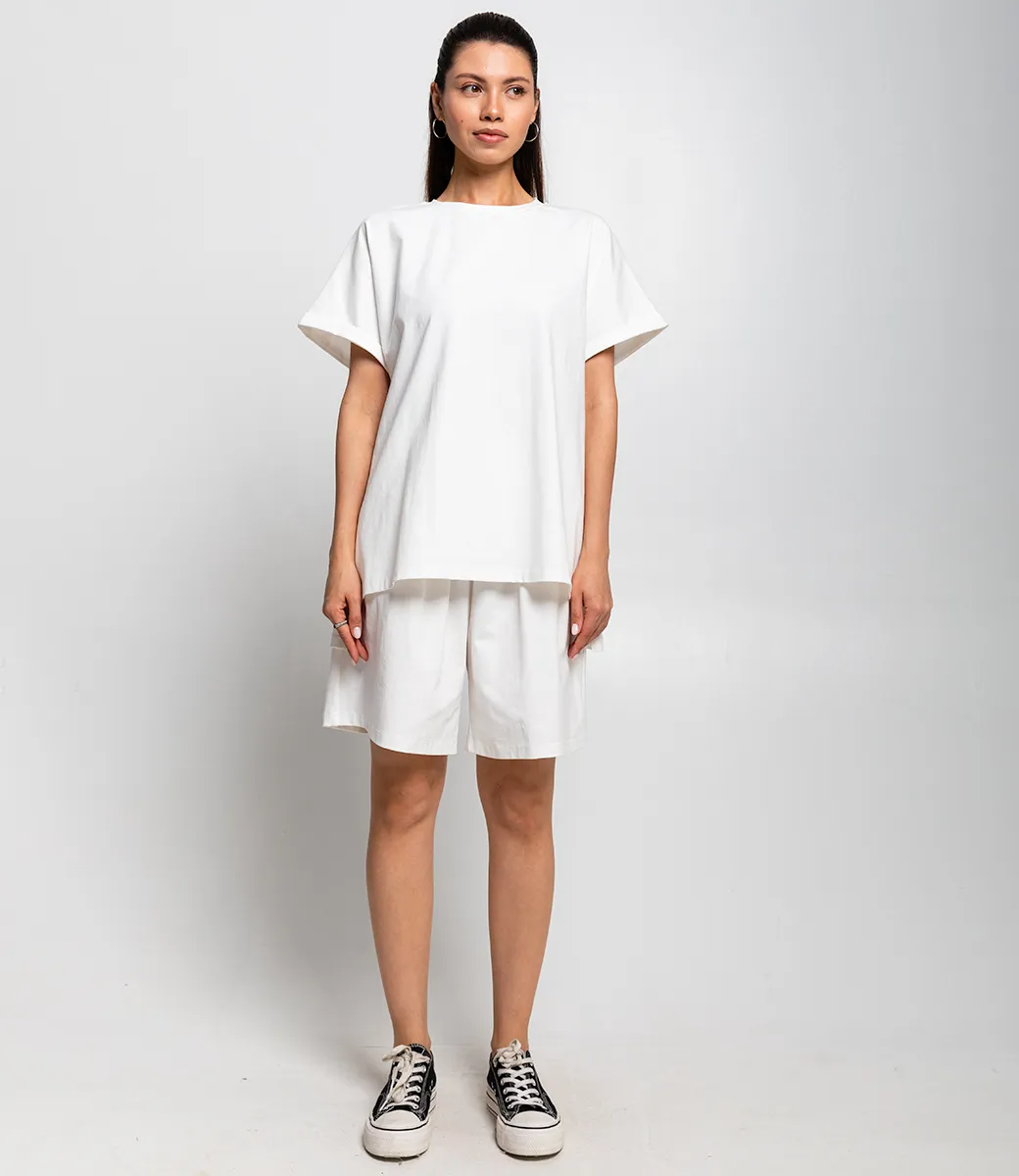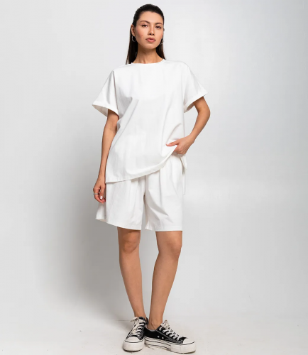 Костюм – это эффектная часть гардероба, подчеркивающая женственность и уникальность каждой представительницы прекрасного пола. Костюм состоит из двух частей — свободной футболки и шорт, выполненных в спокойном темно-коричневом цвете. Футболка имеет классический круглый вырез и рукава средней длины с подворотом, а шорты достигают средней длины на бедрах, обеспечивая комфорт и свободу движений. Основной материал костюма — 95% полиэстер и 5% эластан. Для уверенности в размере мы представили на странице таблицу, чтобы вы могли самостоятельно обмерить себя и убедиться в идеальной посадке костюма. Предложенная нами цена является приемлемой, что делает этот комплект отличным выбором для оптовых покупателей. Не упустите возможность предложить вашим клиенткам этот стильный костюм, который станет их любимым выбором для летних дней! Позвольте вашим покупательницам наслаждаться комфортом и элегантностью с этим великолепным комплектом! Рост модели 164 см., 83-61-89.